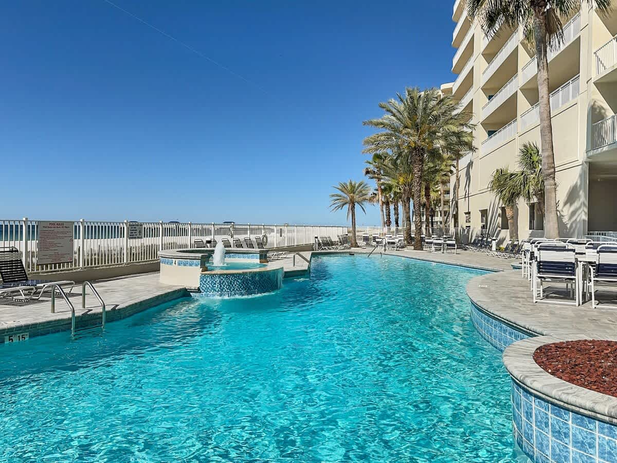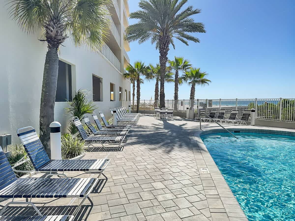 Admirals Quarters is located directly on the beach, with no roads to cross, making beach access quick and easy. The property is close to local restaurants, shops, and entertainment, including the well-known Flora-Bama, located just down the road. On-site amenities include an outdoor pool, indoor pool, sauna, fitness room, and BBQ area, offering plenty of options for downtime between beach outings.