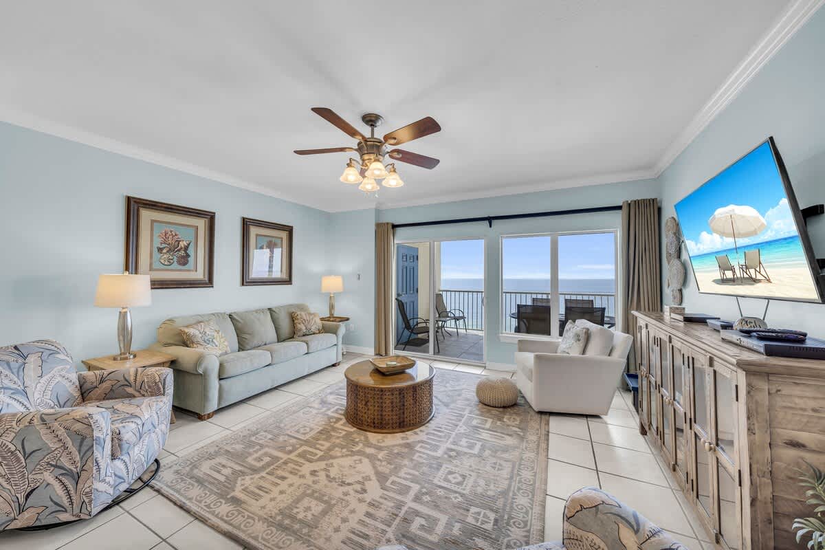 Admirals Quarters 1104, hosted by Current Tides, is a spacious gulf-front condo in Orange Beach offering comfortable accommodations, great views, and direct beach access. Located right on the sugar-white sand, this condo makes it easy to enjoy relaxed beach days and time together without overcomplicating your stay. The large private balcony, accessible from both the living room and primary bedroom, is a great spot for morning coffee or winding down in the evening while taking in the Gulf views and overlooking the pool area.