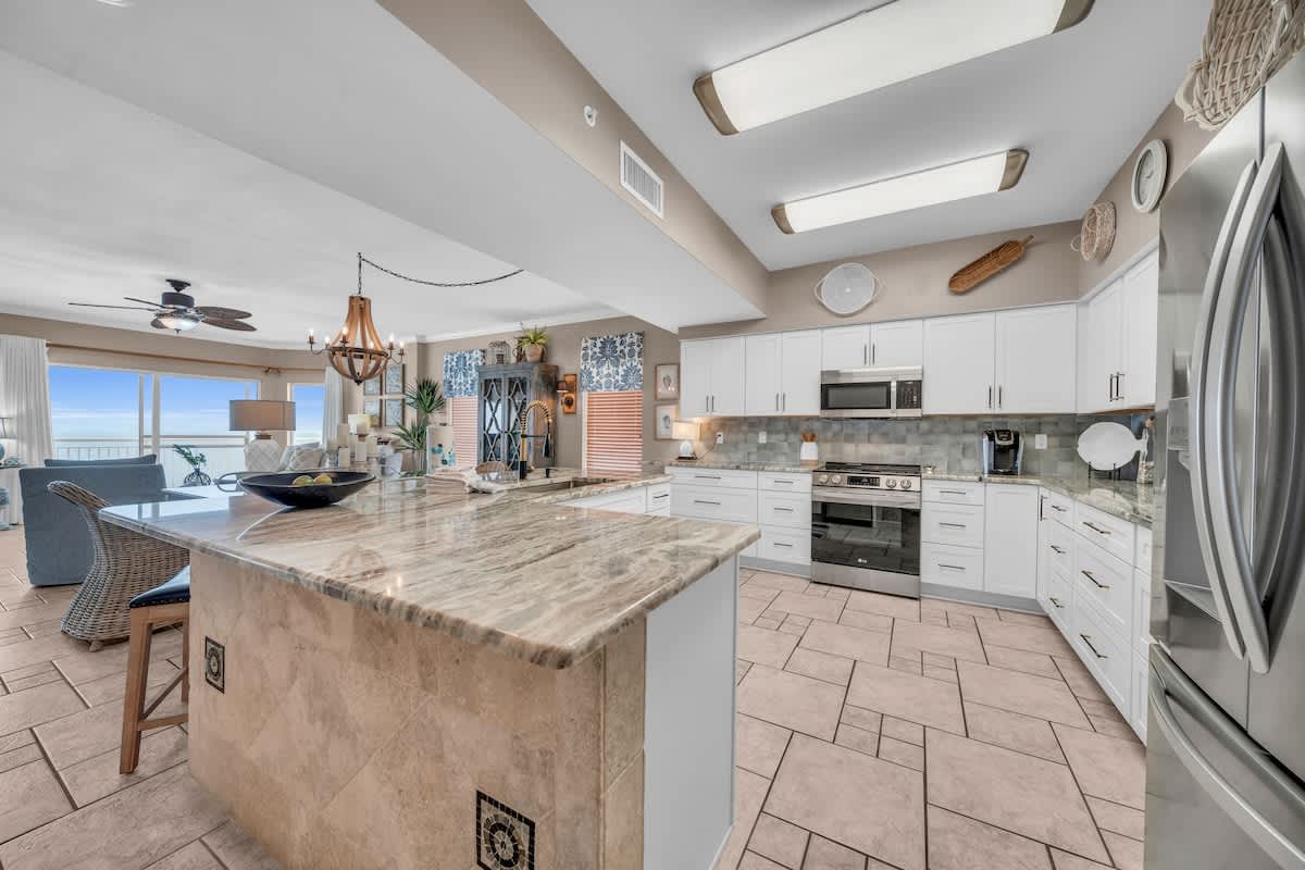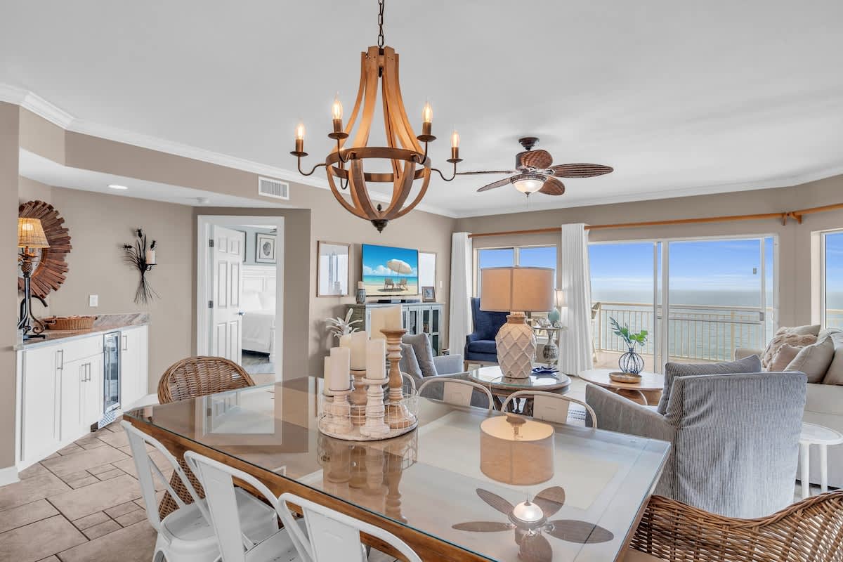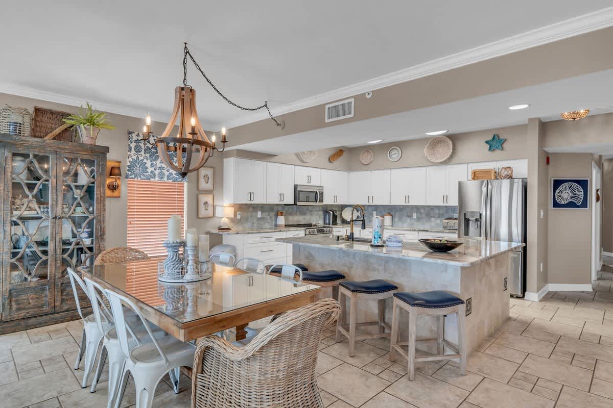 Ready to whip up something tasty? The gourmet kitchen has all the tools you need, plus plenty of counter space to make mealtime a breeze. Serve your creations at the spacious dining table and enjoy dinner with a view (bonus points for sunset timing).