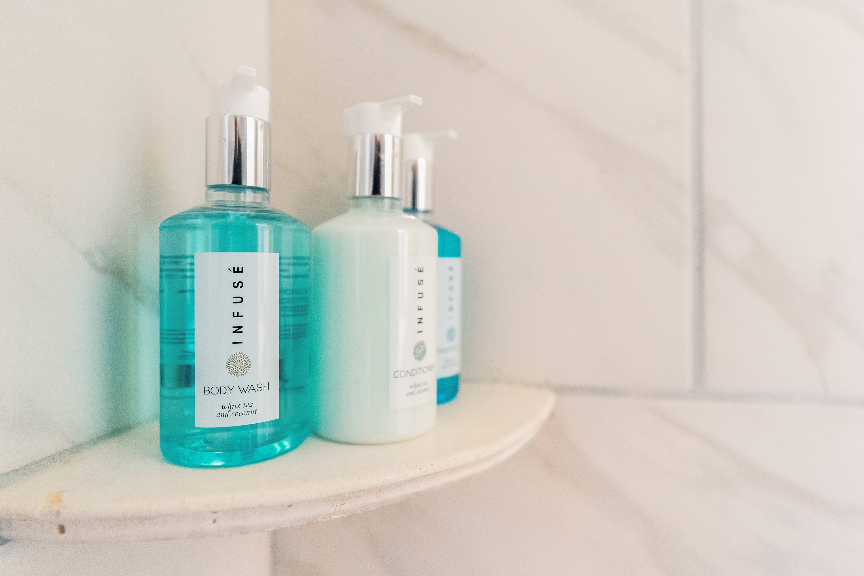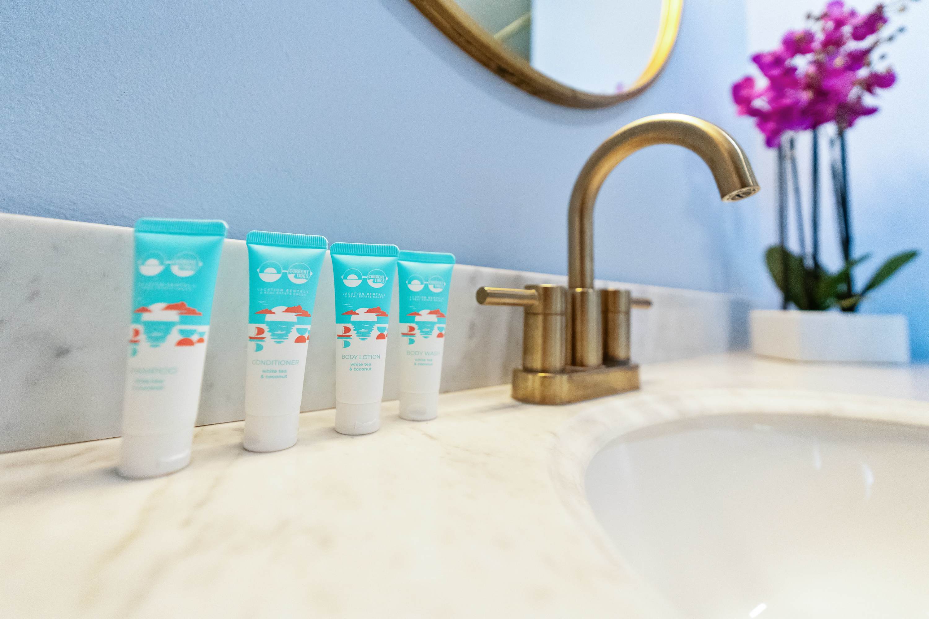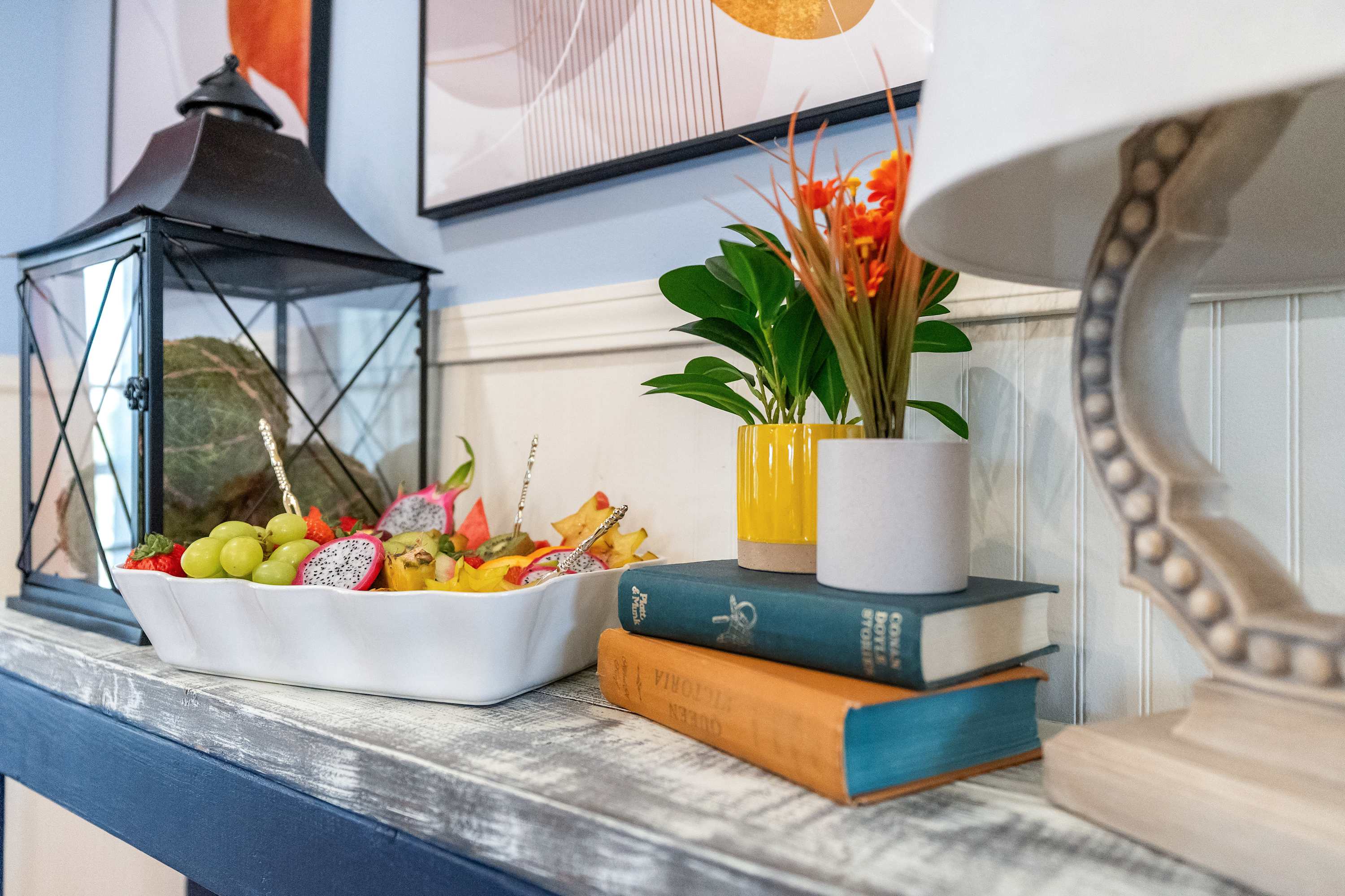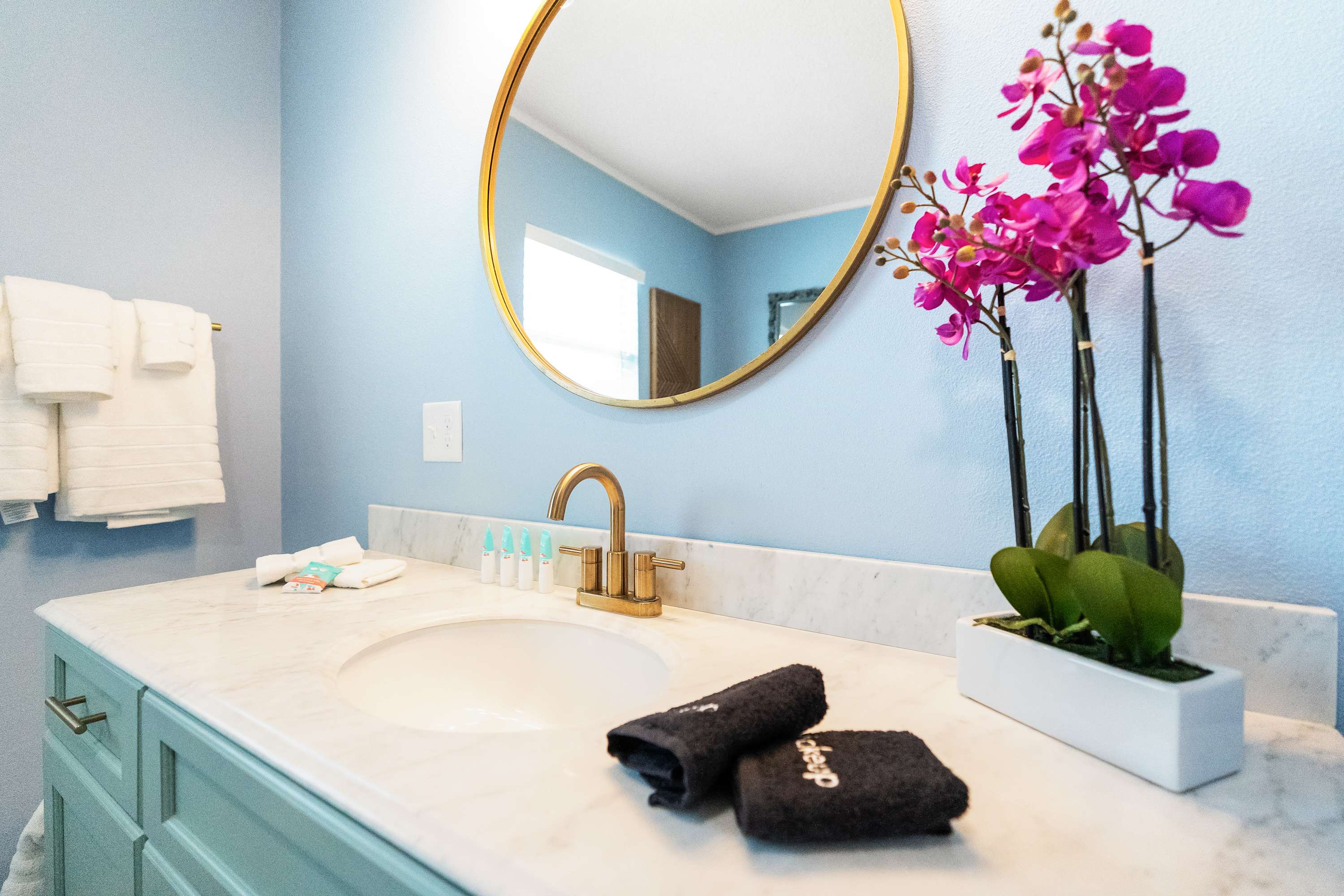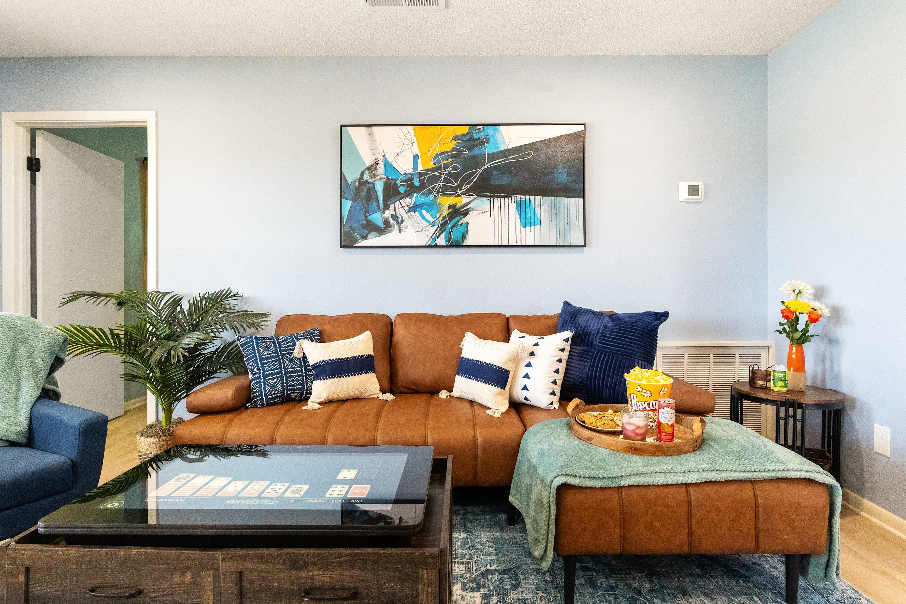 As you explore the bedrooms, you're greeted by the tasteful decoration and thoughtfully chosen furnishings. Each room exudes a unique modern design with plush bedding and ample storage to make your stay feel like an escape from the ordinary. The primary bedroom boasts a king bed, TV, a seating area, and an en-suite bathroom, adding a touch of luxury to your vacation experience. Equally relaxing is the second bedroom furnished with a king bed with plush bedding and décor that embody the beautiful colors of the sunset to help its dweller unwind. The third bedroom is set-up for those who appreciate adventure boasting two twin over queen bunk beds and surrounded with framed local attractions intentionally placed in this room to remind you of the adventure that awaits you with parasailing, kayaking, boating, fishing, jet-skiing, hiking and historic forts visit.