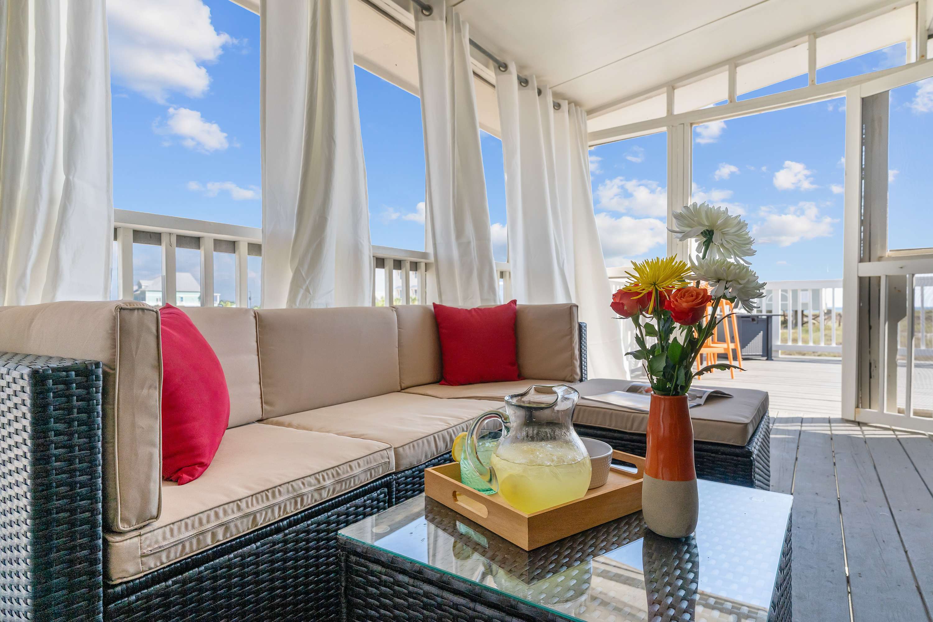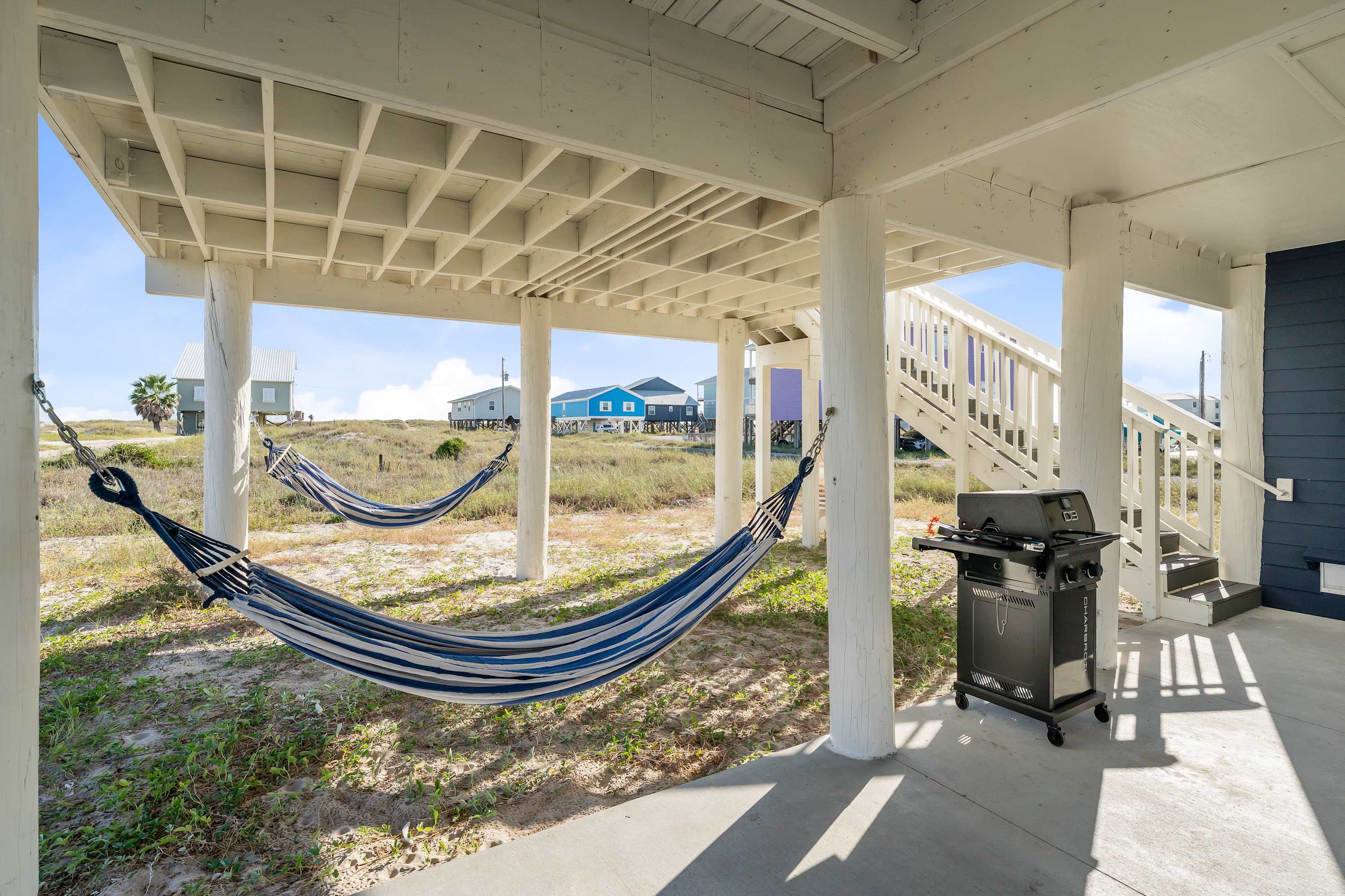 The real magic of this vacation property becomes evident when you step outside the deck, screened in porch or the lower section of the home. Each space offers amenities that invite you to create lasting memories. Step onto the deck and enjoy endless gulf views, sunrises and sunsets while sipping your favorite drink. While you are at it, enjoy a relaxing bathe under the sun on the comfortable outdoor seating or whip up those grilling tools and fire up the gas grill and channel your inner BBQ master. Find your way down to the lower section of the home where a picnic table and benches wait for a perfect spot for alfresco dining.