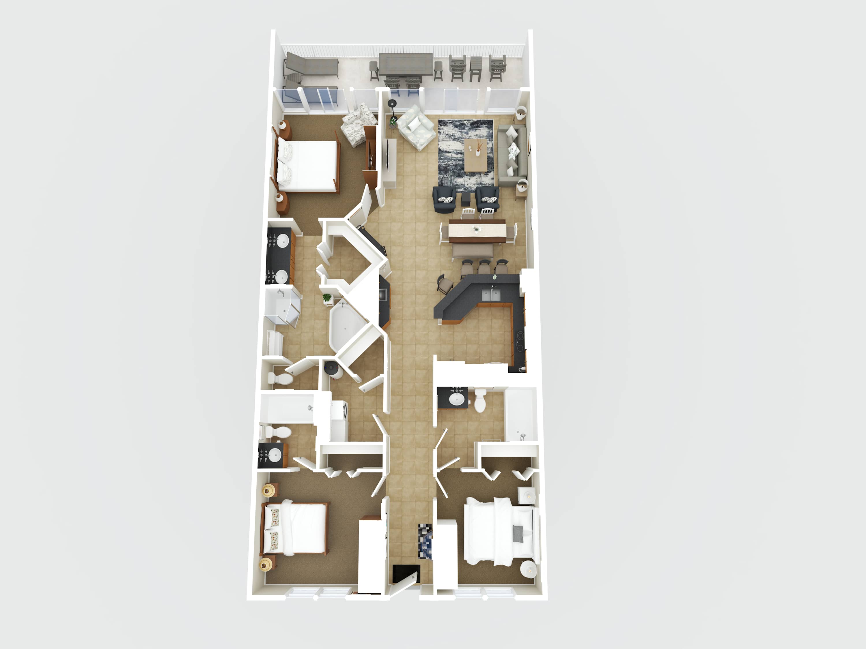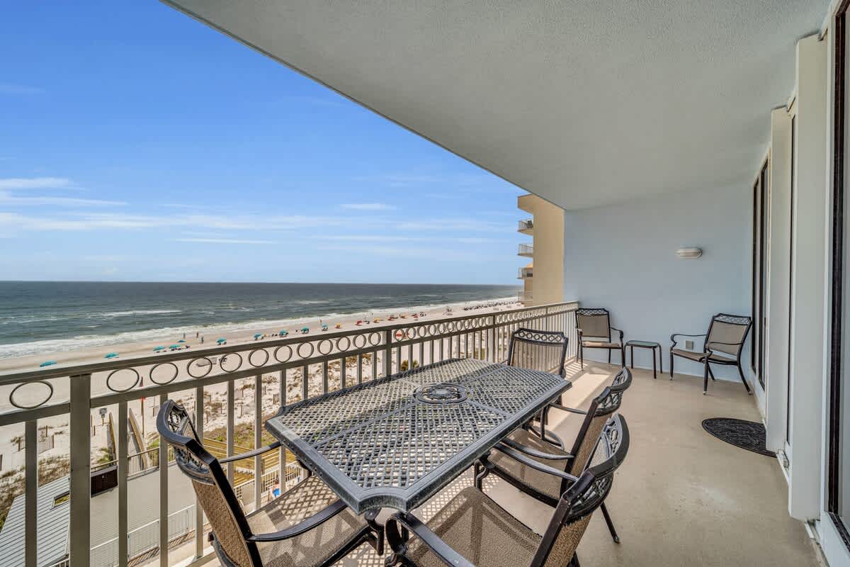 Step out onto the expansive balcony, your private perch overlooking the sparkling Gulf waters. Whether it’s morning coffee as the sun rises or evening cocktails as the waves roll in, this outdoor space is the perfect setting for soaking up the beauty of Gulf Shores.