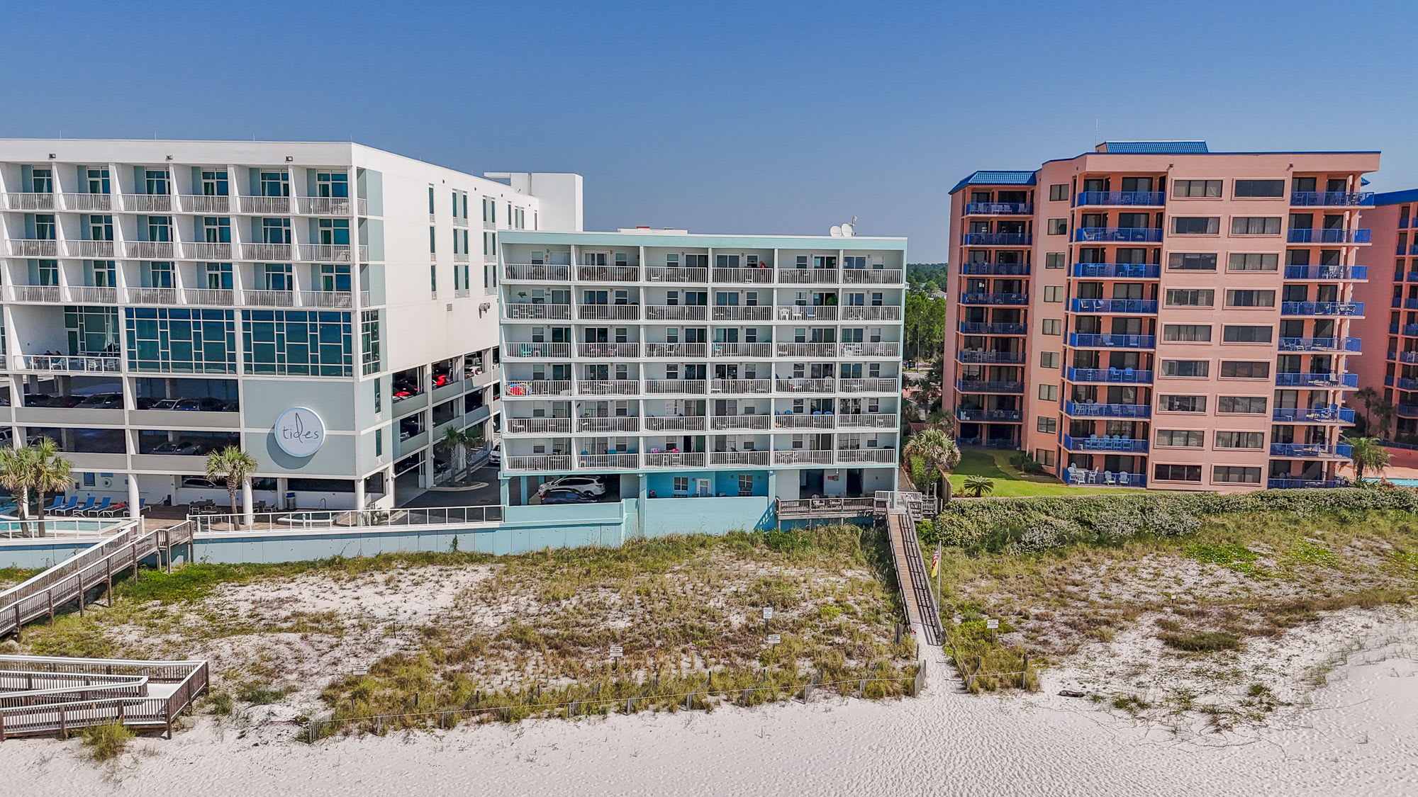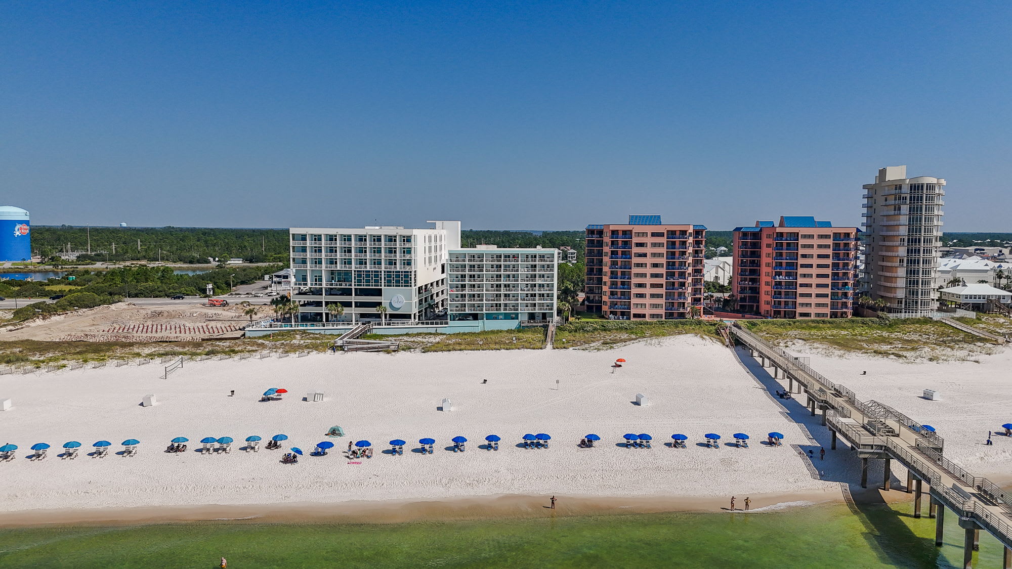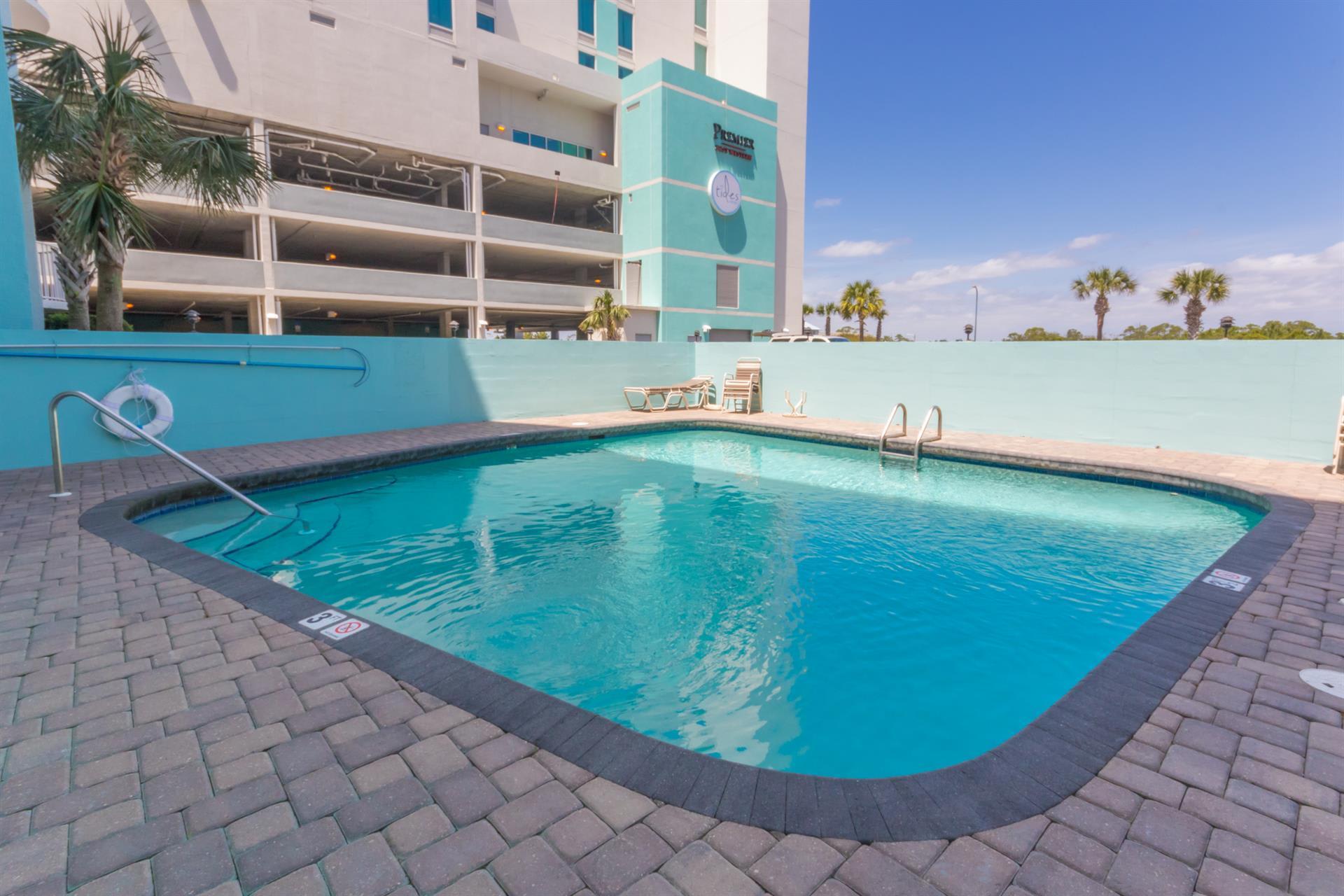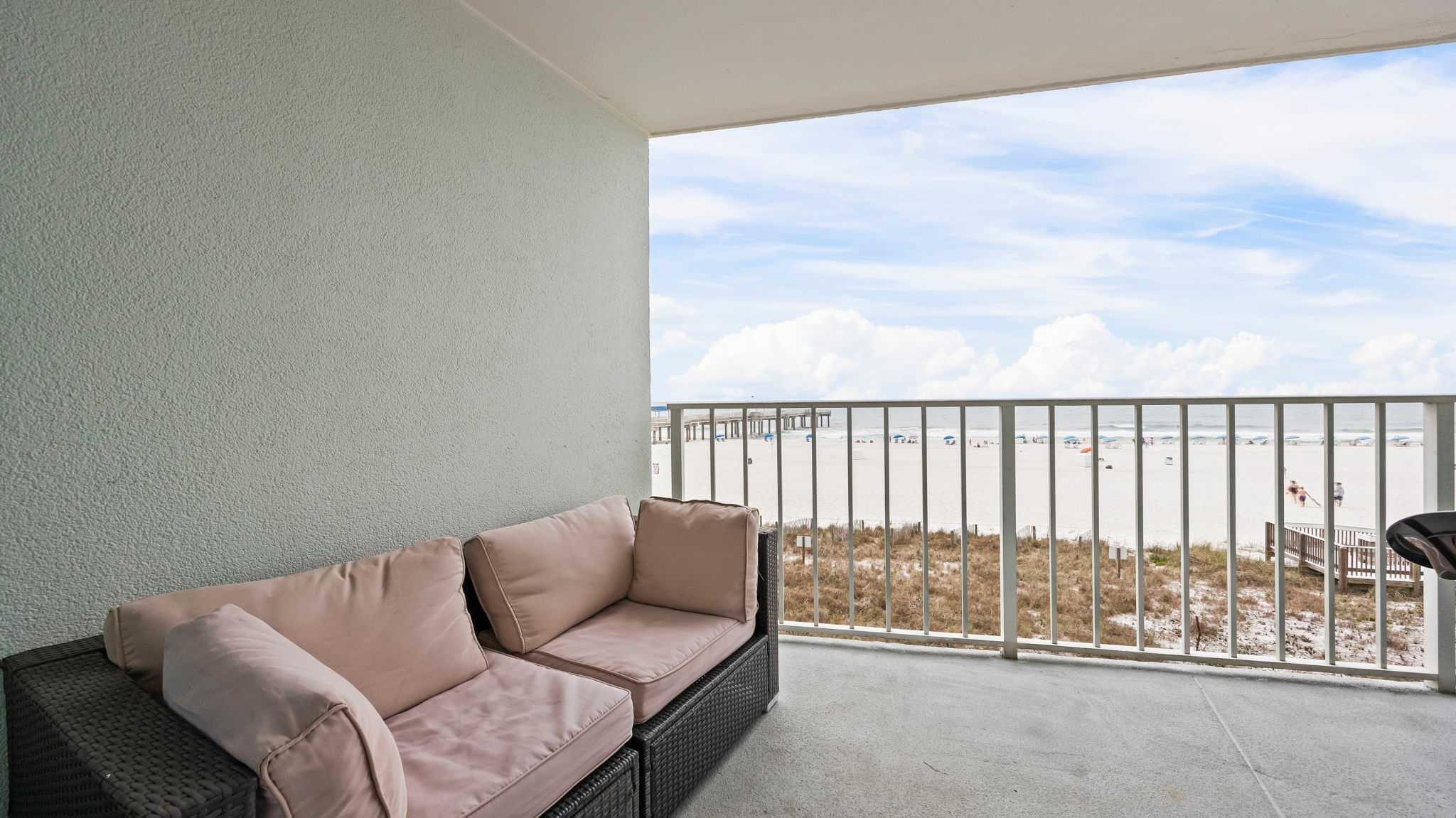 Guests have access to on-site amenities including an outdoor pool, fitness center, and direct access to the beach. The location also places you close to local restaurants, shops, and Orange Beach attractions, making it easy to explore the area.