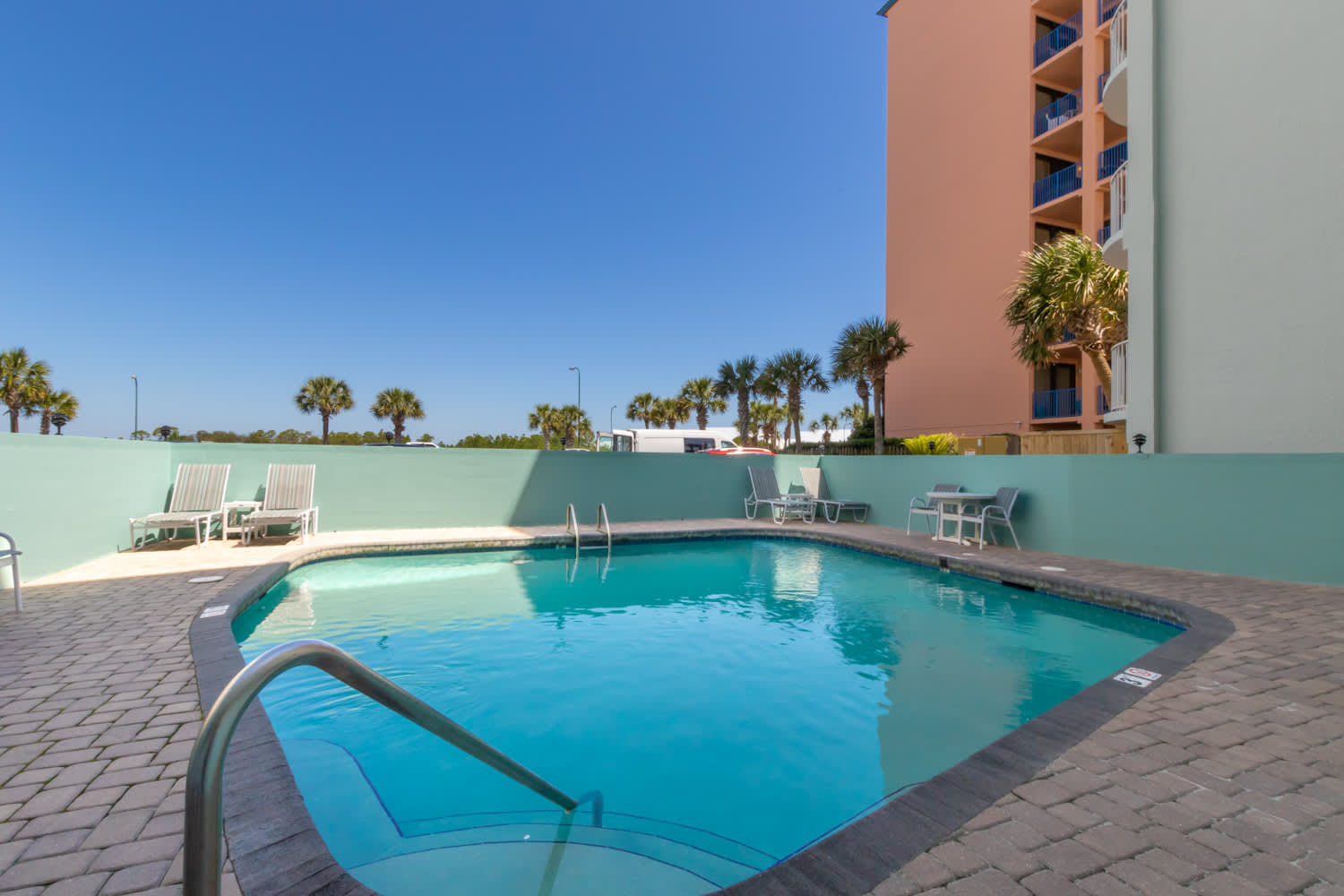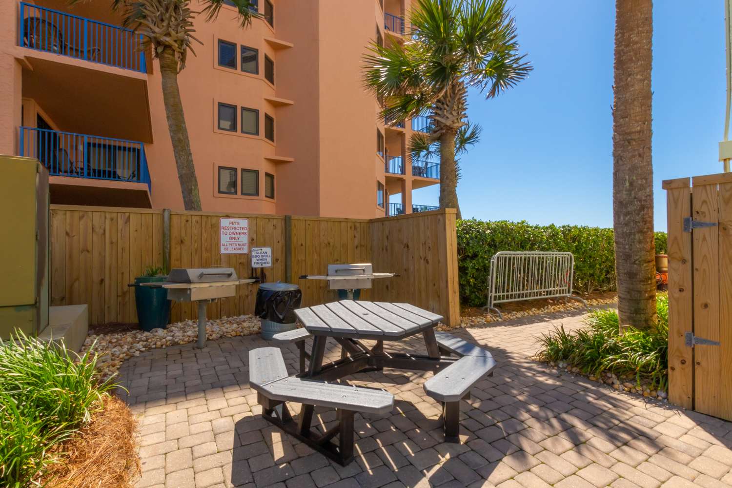 Step outside to enjoy the resort-style amenities, including a sparkling outdoor pool for cooling off or lounging in the sun. A fitness center is available for those who like to stay active, and direct beach access means you’re just steps from the sugar-white sand and turquoise waters.