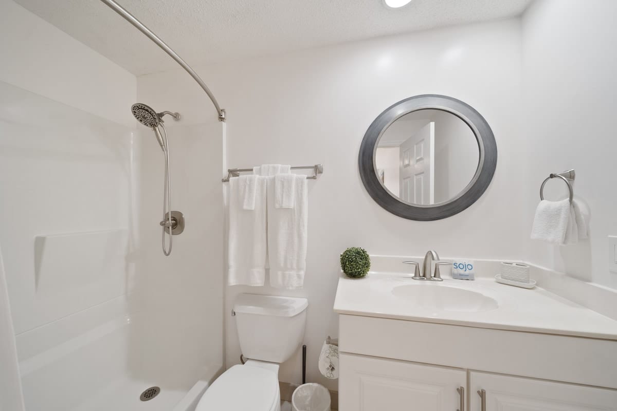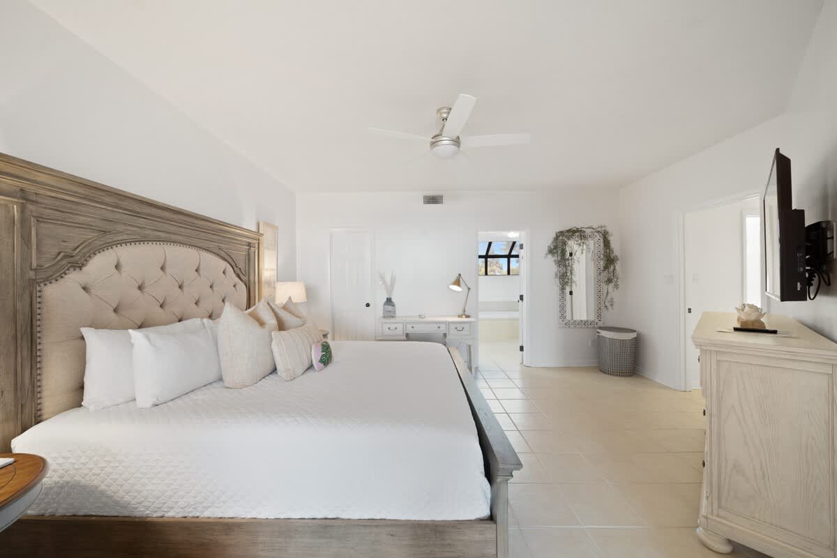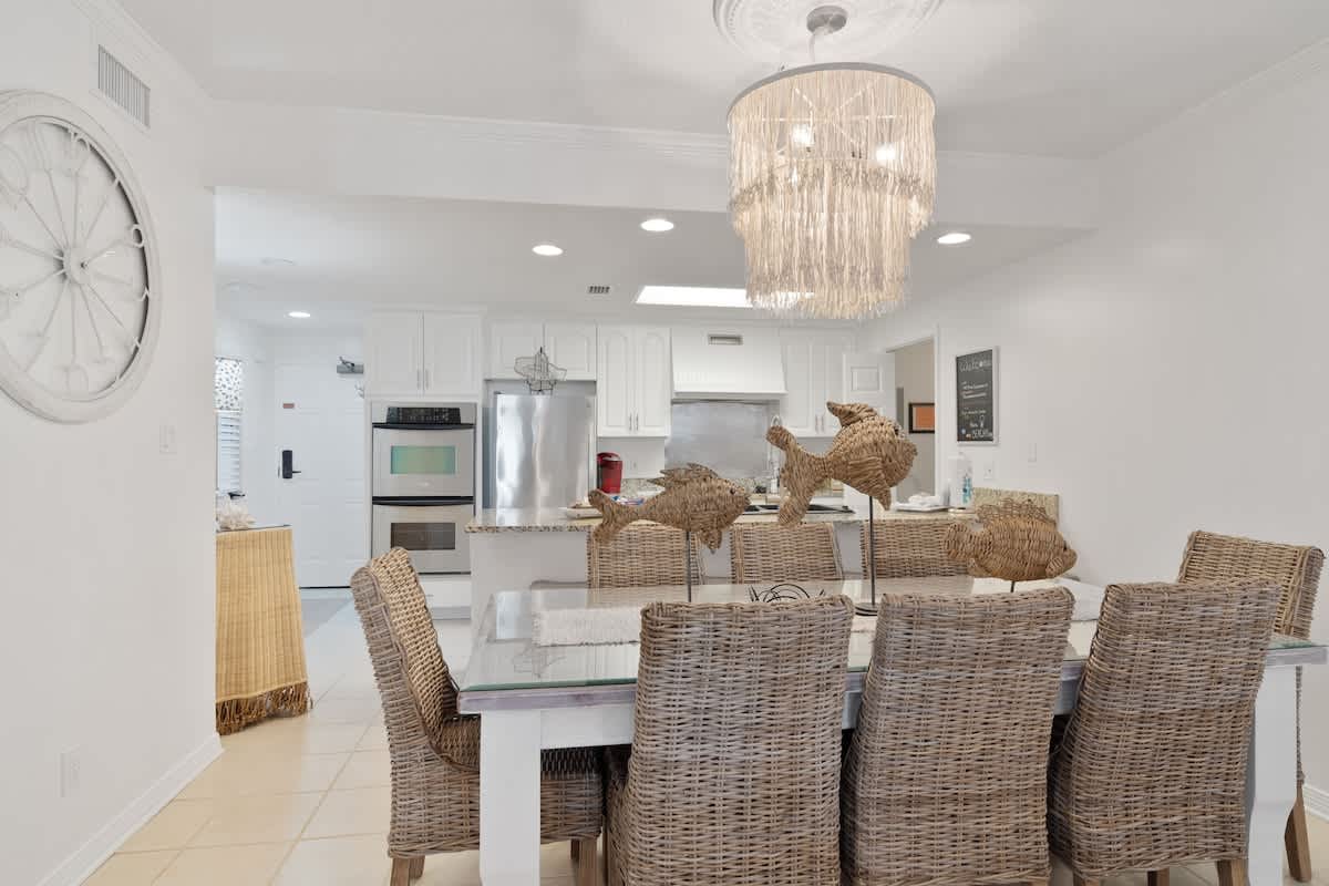 The open-concept kitchen, dining, and living area is a chill zone made for hanging out. The kitchen’s got everything you need—updated appliances, a big island for gathering, and all the cookware for whipping up your crew’s favorite eats. Not feeling the whole cooking thing? No worries, there are some killer restaurants just around the corner.