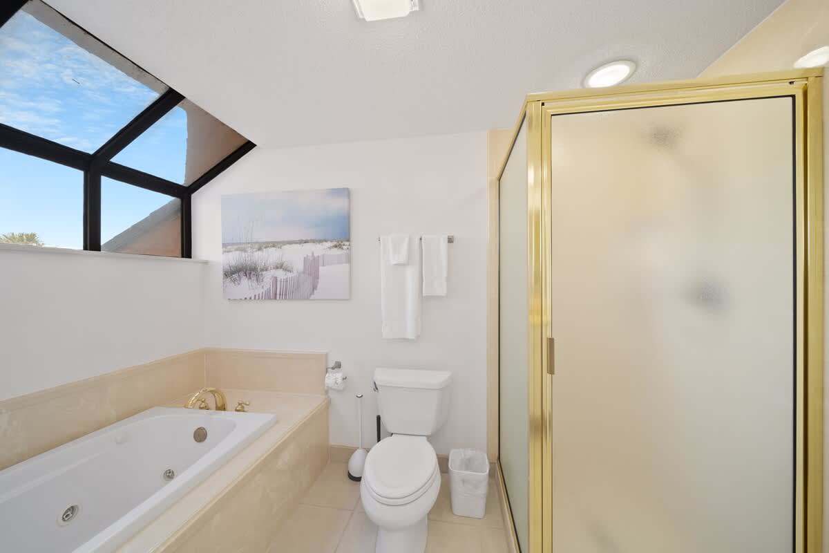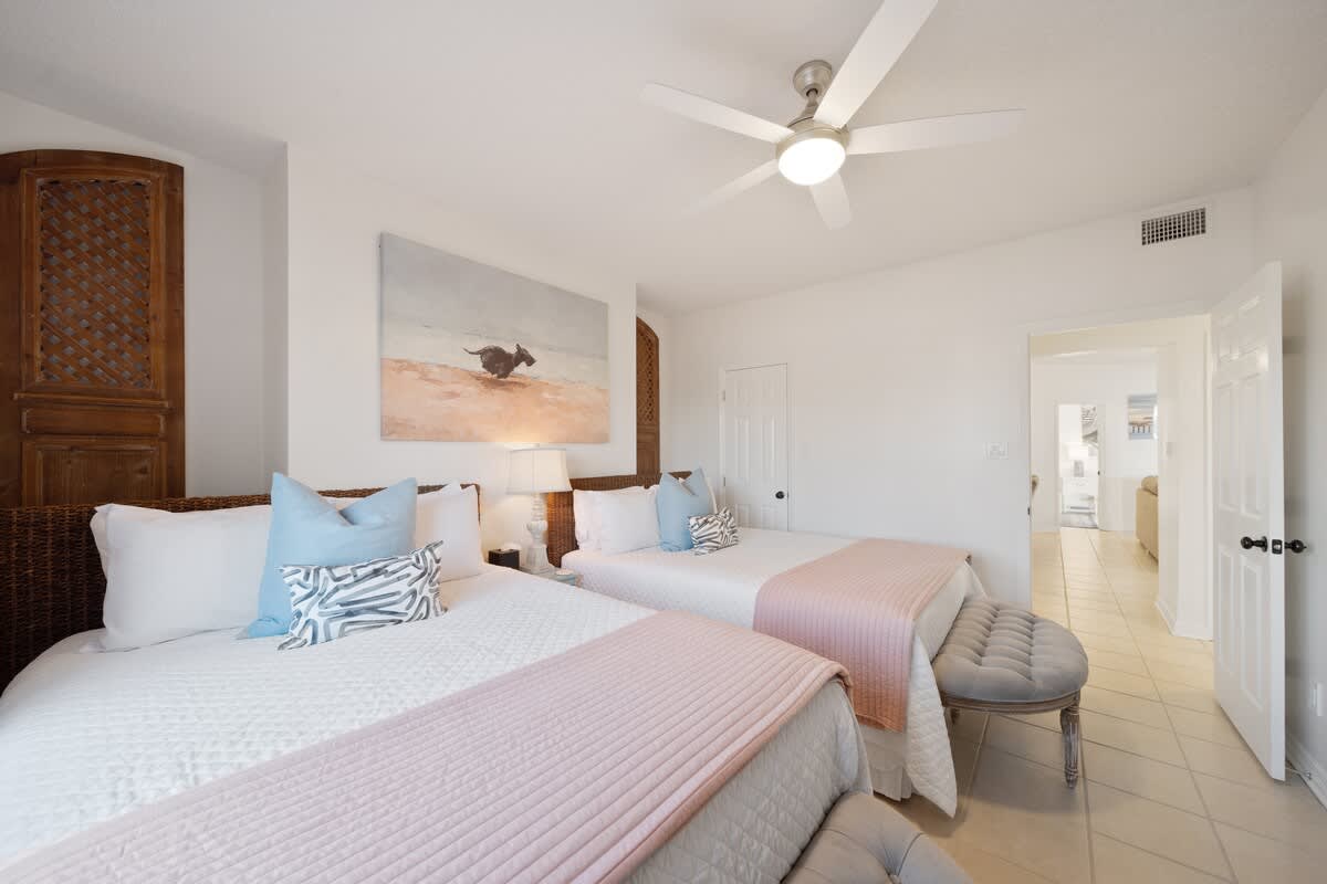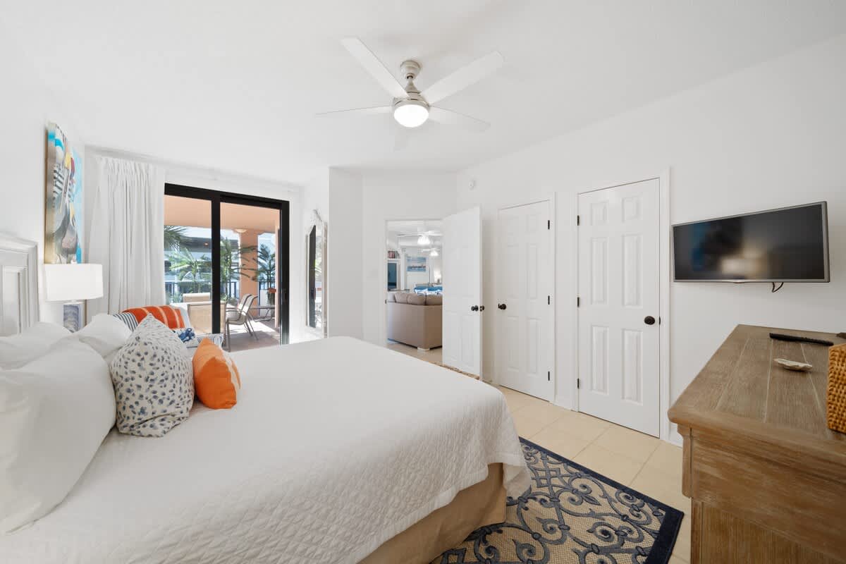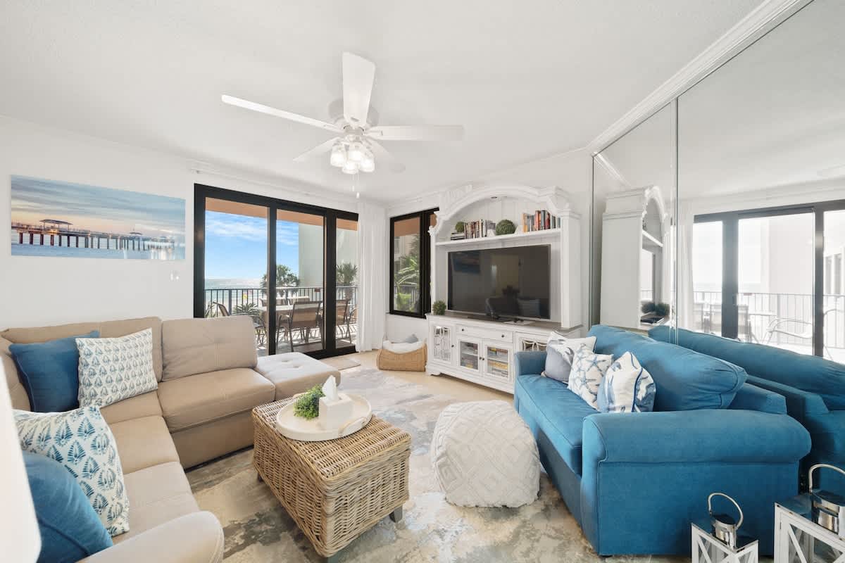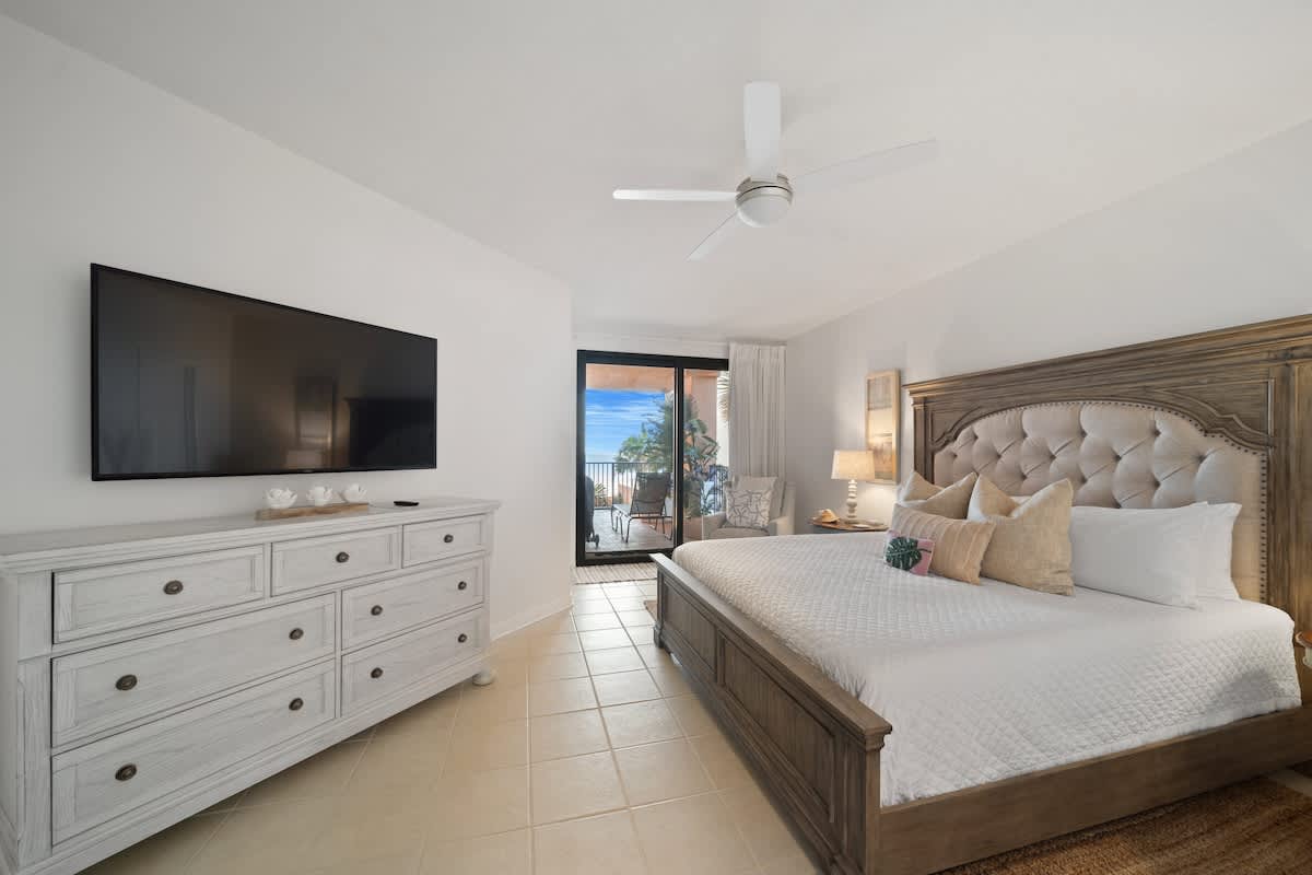 When it’s time to catch some Zs, the master bedroom brings the chill with a king-size bed, private bathroom, and its own door to the shared balcony—wake up and roll straight into those epic Gulf views. Another guest bedroom also has a king bed and balcony access, while the third bedroom rocks two queen beds, perfect for the whole crew. Got more tagalongs? No worries—the living room has a sleeper sofa and sleeper chair, so everyone’s got a spot to crash.