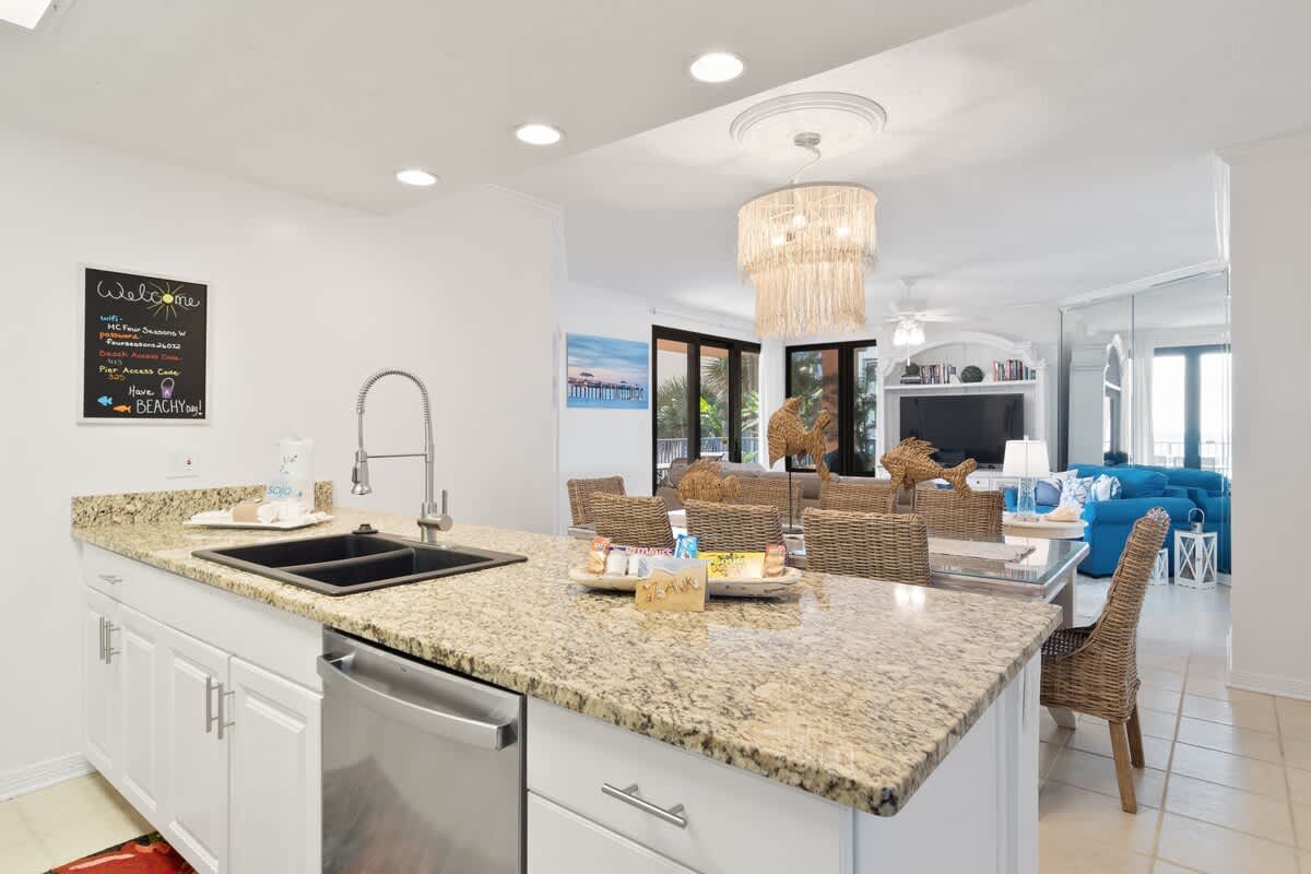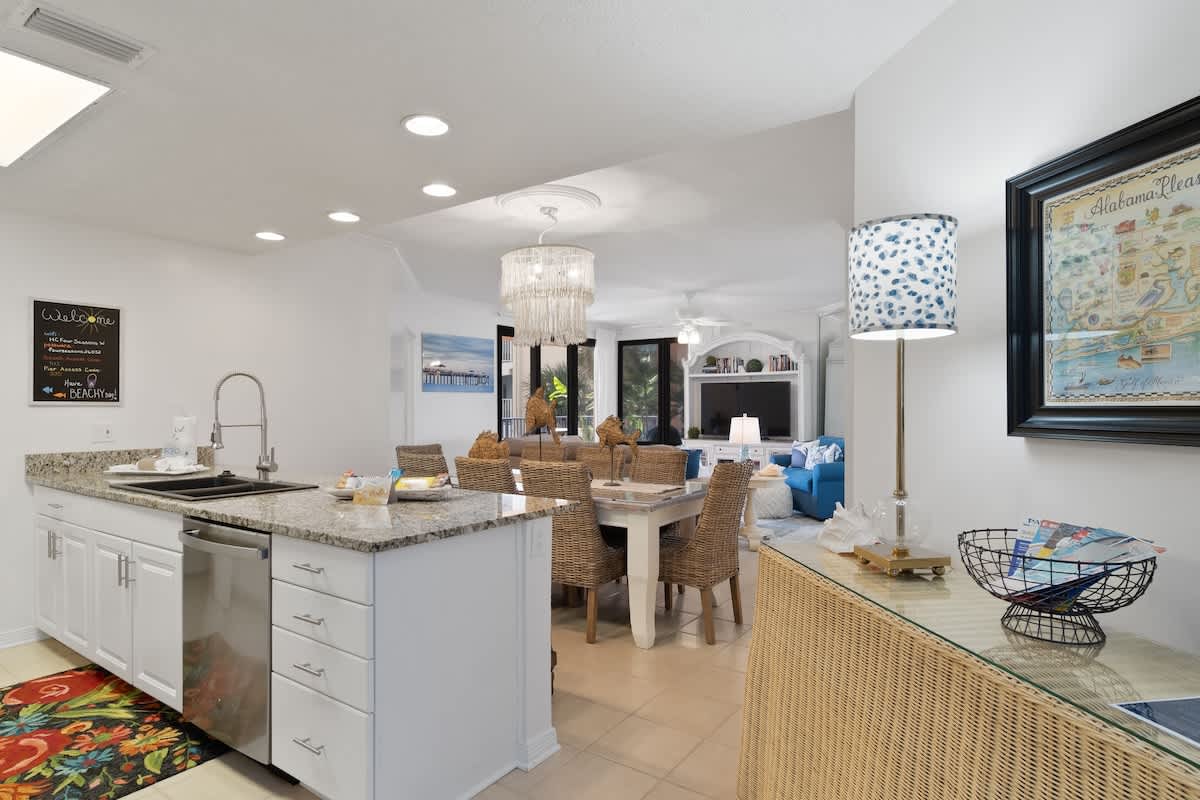 Four Seasons 204 W hosted by Current tides will be your new favorite beach hangout! This Gulf-front condo in the heart of Orange Beach is all about good vibes and coastal cool. With sleek modern whites, a sparkling crystal chandelier, and an airy, breezy style, this spot feels as fresh as the ocean breeze. It’s the perfect place to kick back, relax, and let the salty air work its magic.