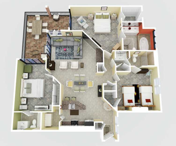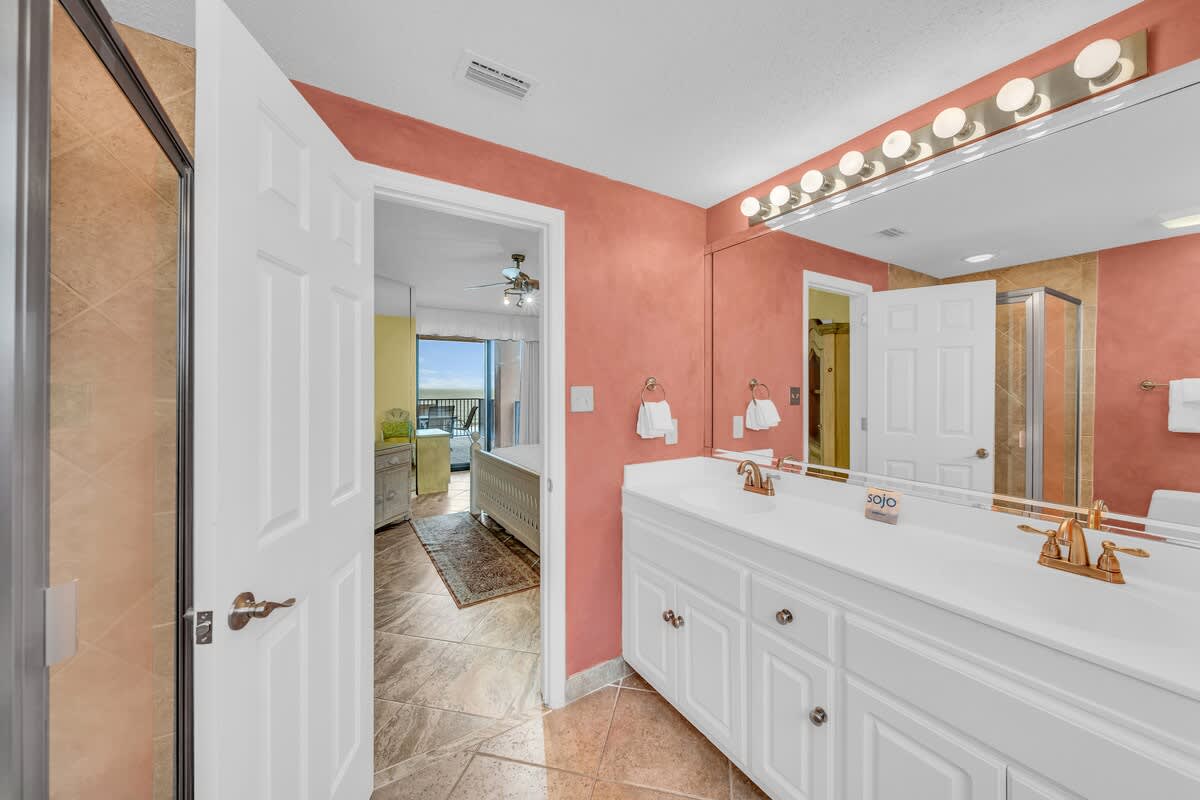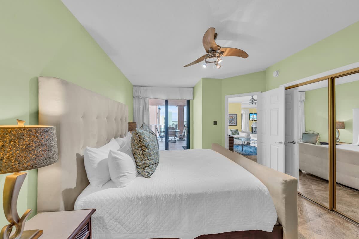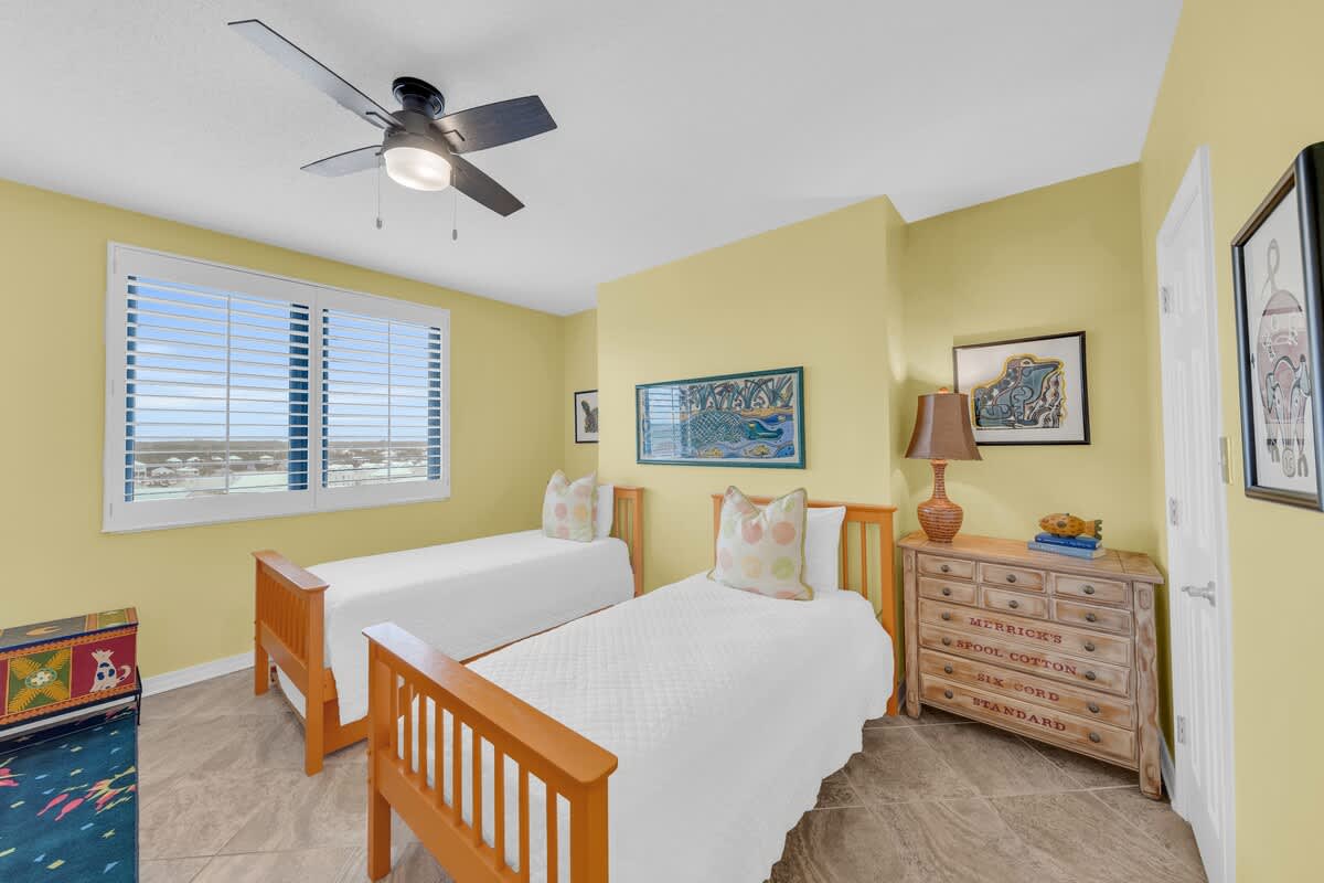 This condo keeps everyone comfy with three spacious bedrooms, each with its own bathroom. The master suite features a king-size bed, a private bathroom with a soaking tub, and balcony access—so you can wake up with the Gulf as your backdrop. The second bedroom also has a king bed, a private bathroom with a tub/shower combo, and its own patio door. The third bedroom is perfect for kids or extra guests with two twin beds (plus a slide bed!) and its own bathroom.