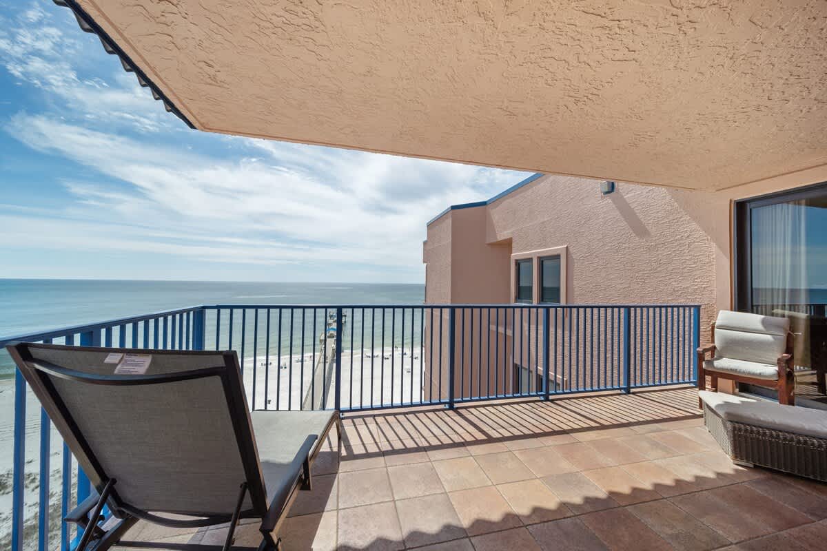 The living room flows out to a spacious Gulf-front balcony where jaw-dropping views and magical Alabama sunsets await. Both bedrooms are retreats with their own bathrooms and balcony access. The master suite features a king-size bed, jetted tub, and private access to the balcony, while the second bedroom has a queen bed and its own door to paradise. For extra sleeping space, the queen sleeper sofa in the living room is ready for your crew.