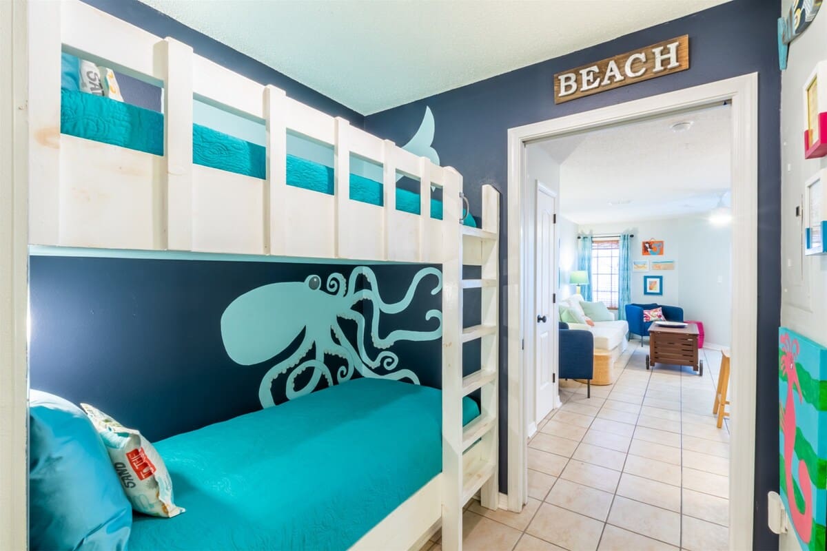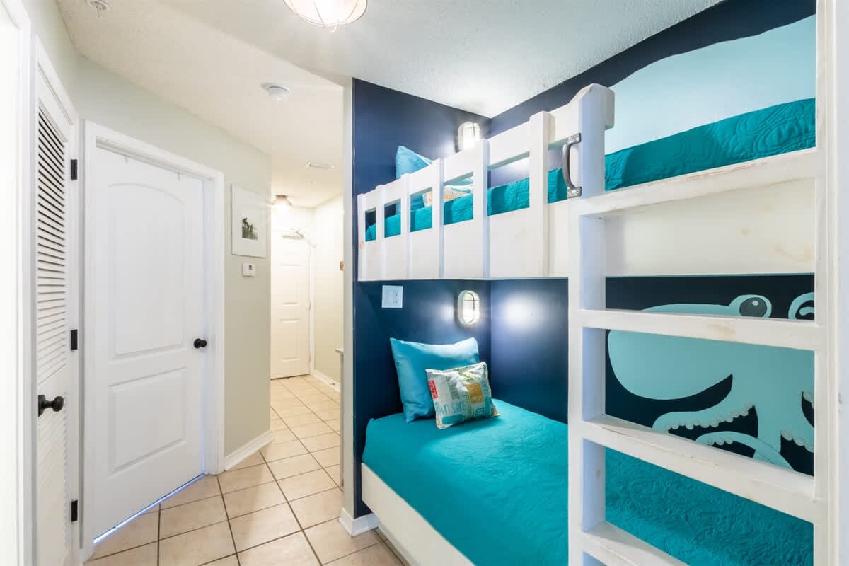 Drift off to sleep in the spacious master bedroom with a plush king-size bed, while the kiddos love their own tucked-away twin bunk beds in the hallway (with a pocket door for added privacy). Need extra space? The queen-size sleeper sofa in the living room is ready for dreamland duty!