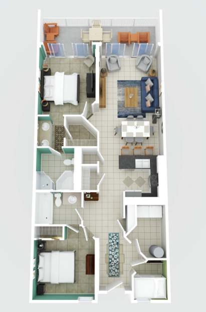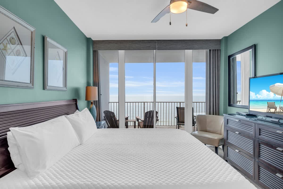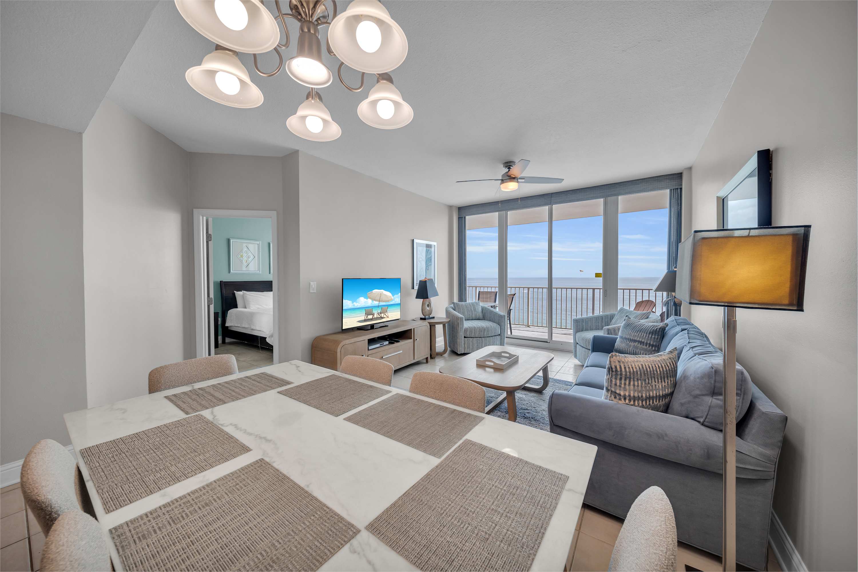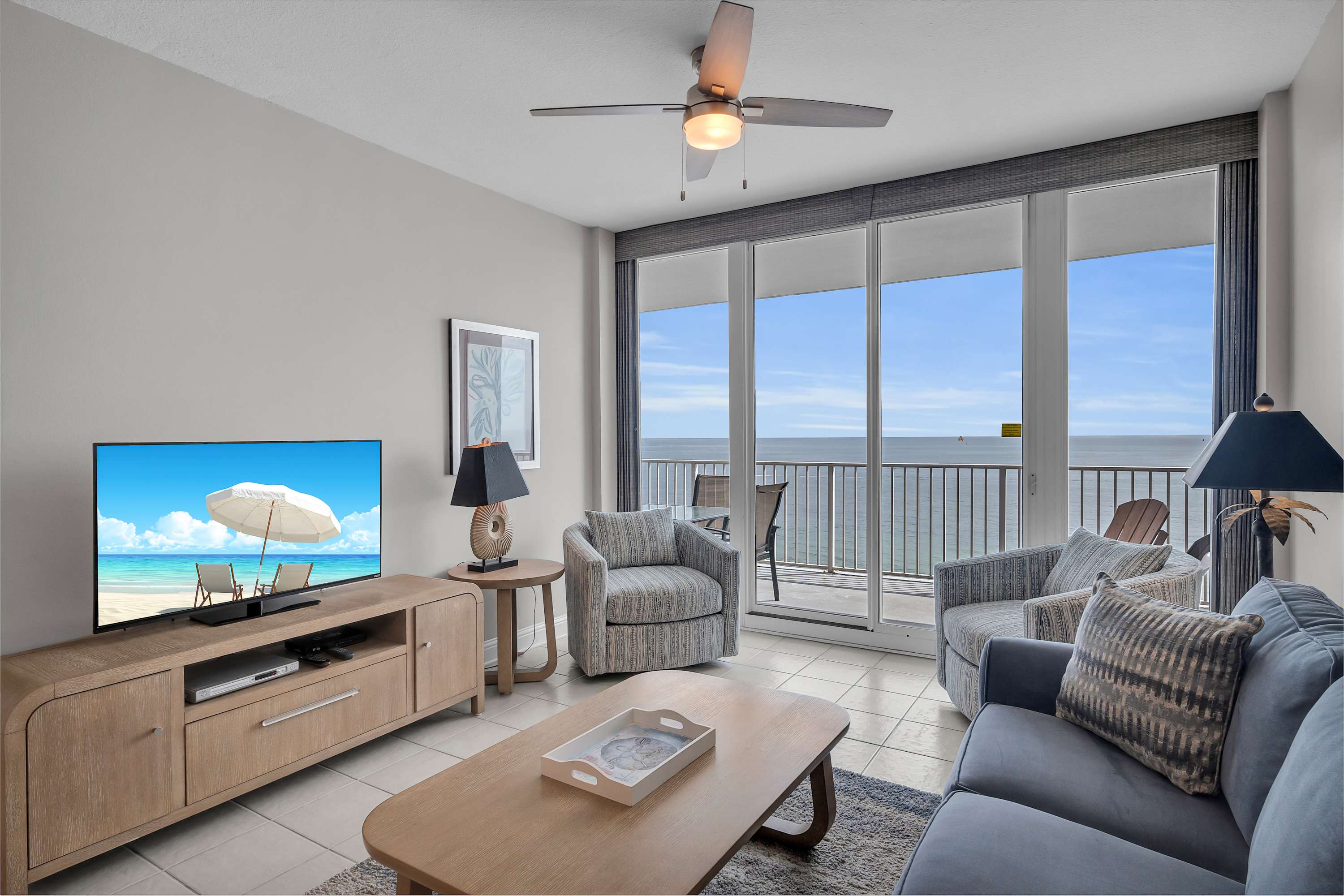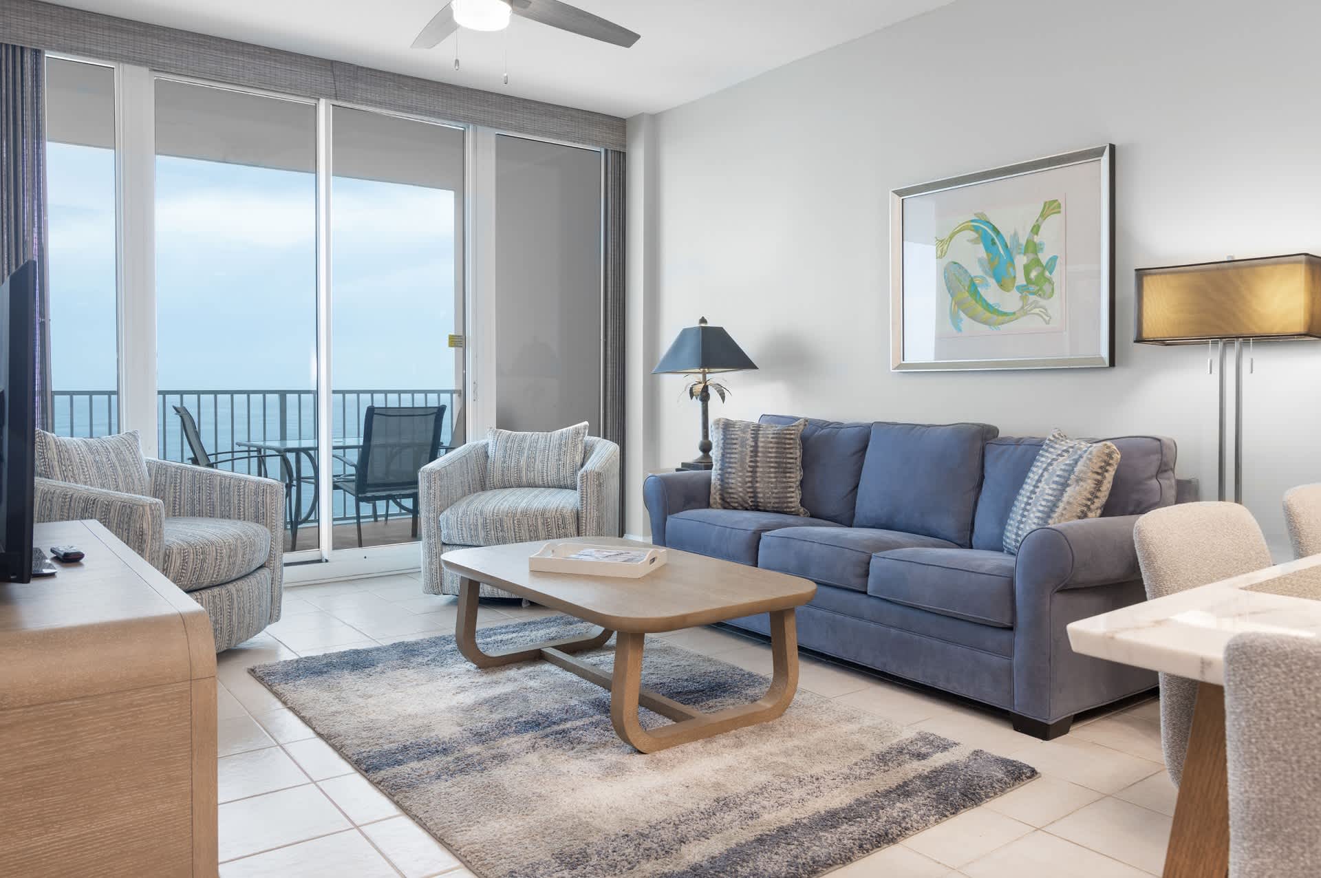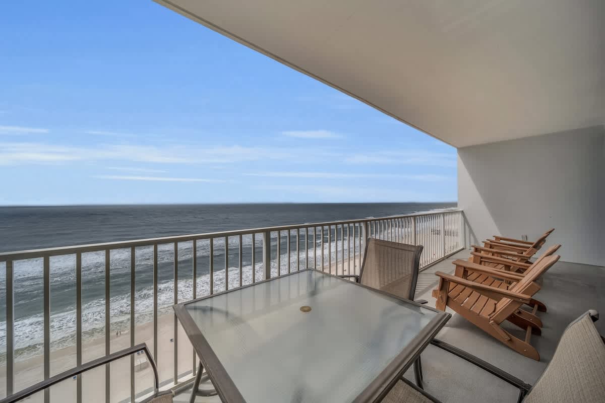 The huge Gulf-facing balcony is the real star, with seating for seven and a cozy table—perfect for sipping sunrise coffee or toasting to another epic sunset with a Gulf-view cocktail. Floor-to-ceiling sliding glass doors in the living room and master suite invite in panoramic white sand views and that salty sea breeze.