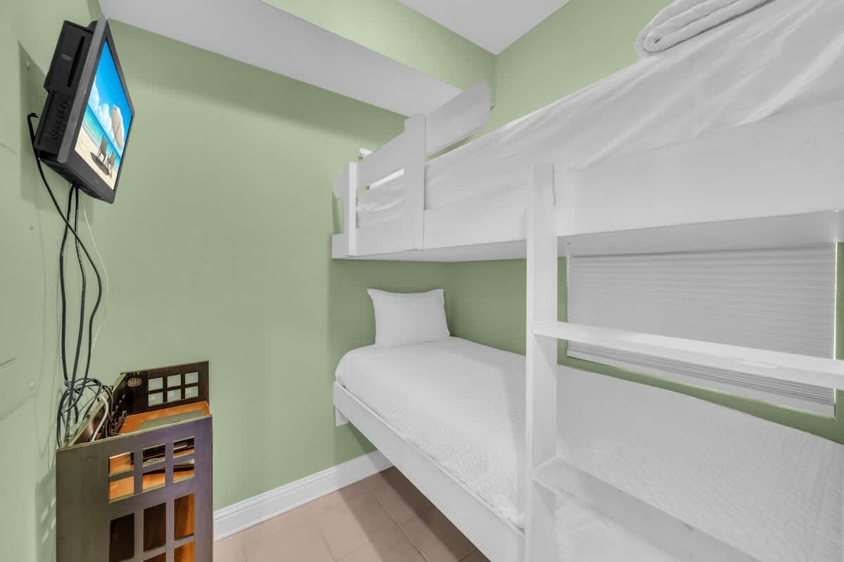 The bunk room is a fun hideaway for the little groms, complete with built-in twin bunks and its own flat-screen TV. A full-size washer & dryer means you can keep those beach towels fresh, and free WiFi keeps you connected when needed (but trust us, you won’t want to check in on the real world).