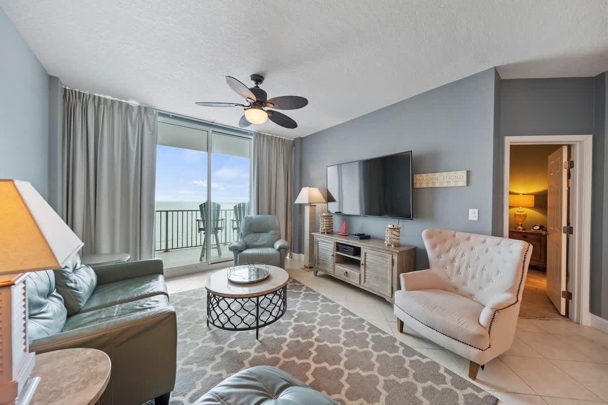 The Lighthouse 1708 host by Current Tides allows you to kick back soak up the views, and let the beach life take over! Perched on the 17th floor, this fresh and stylish Gulf-front condo is all about good vibes and unbeatable scenery. With floor-to-ceiling windows and an oversized beachfront balcony, you’ll have front-row seats to epic sunrises, breezy evenings, and the rolling waves of the Gulf.