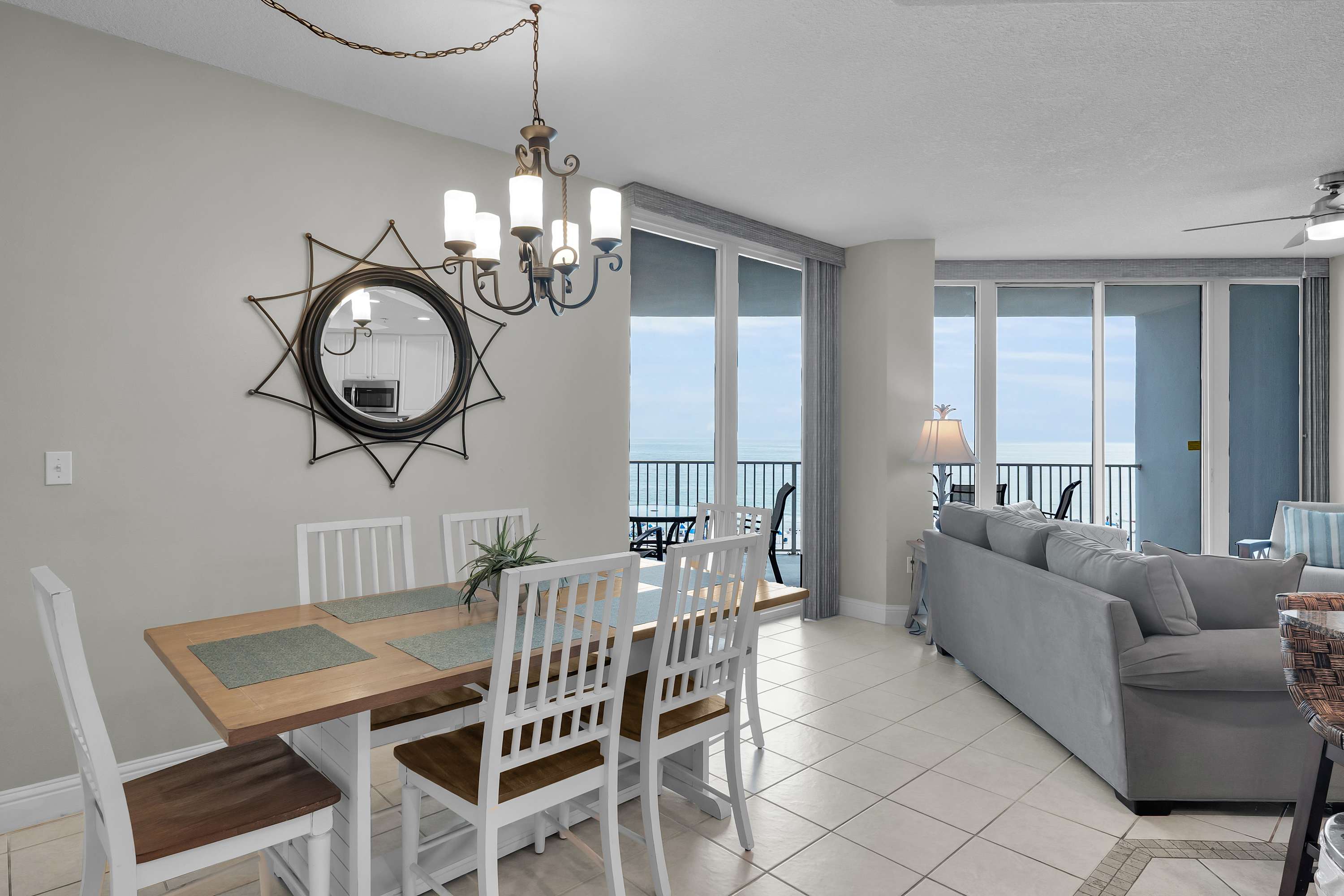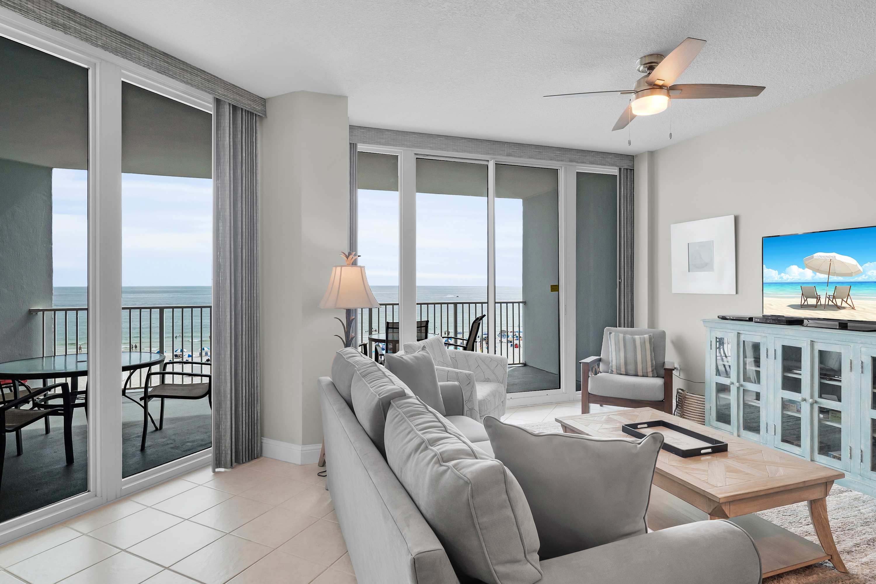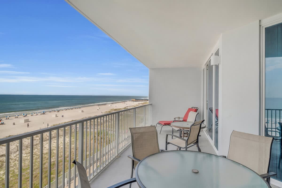 Step outside to the oversized balcony overlooking the pool and the Gulf, complete with a dining table and seating for eight. Sip your morning coffee as dolphins dance in the waves or toast to another perfect beach day with a sunset cocktail.