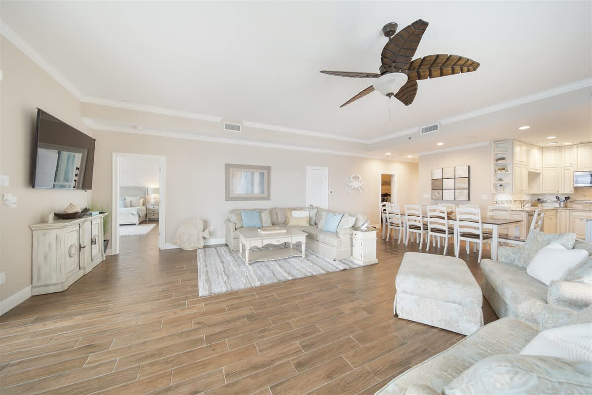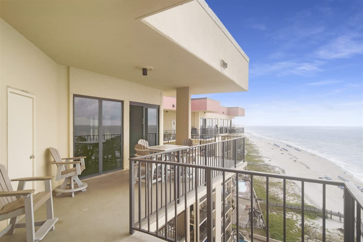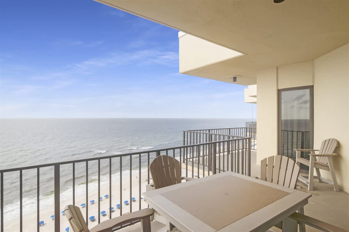 Sitting high on the 15th floor of Phoenix I, unit 1154 is an epic corner penthouse that is the ultimate beach escape! With jaw-dropping Gulf views, a massive wraparound balcony, and plenty of space for the whole crew, it’s the perfect spot to kick back, soak up the sun, and enjoy the laid-back beach life. The huge balcony wraps around the unit, giving you front-row seats to the Gulf and beyond, with plenty of comfy furniture so everyone can lounge in style while soaking in the salty breeze.