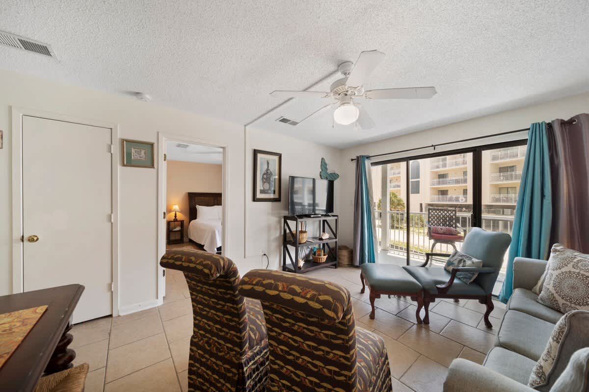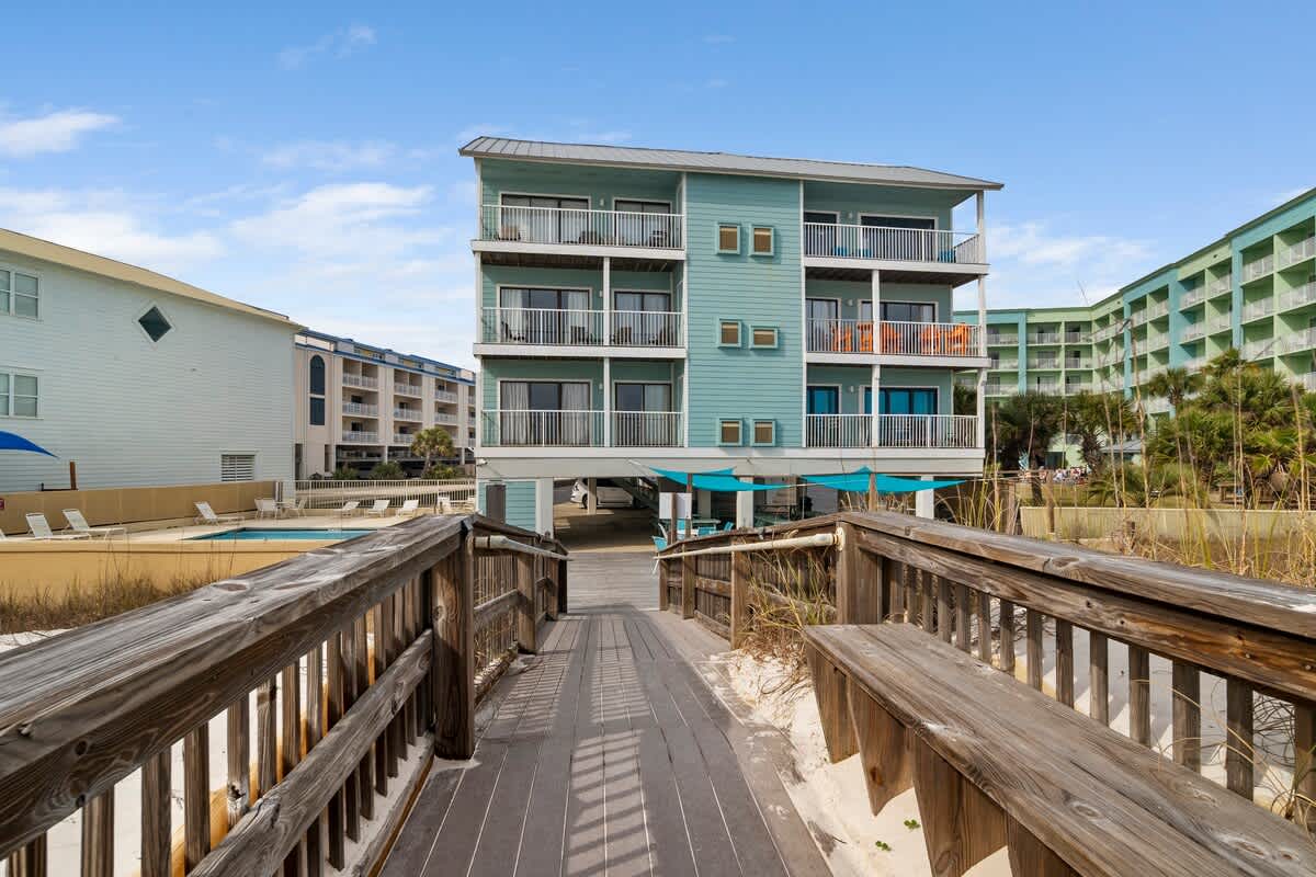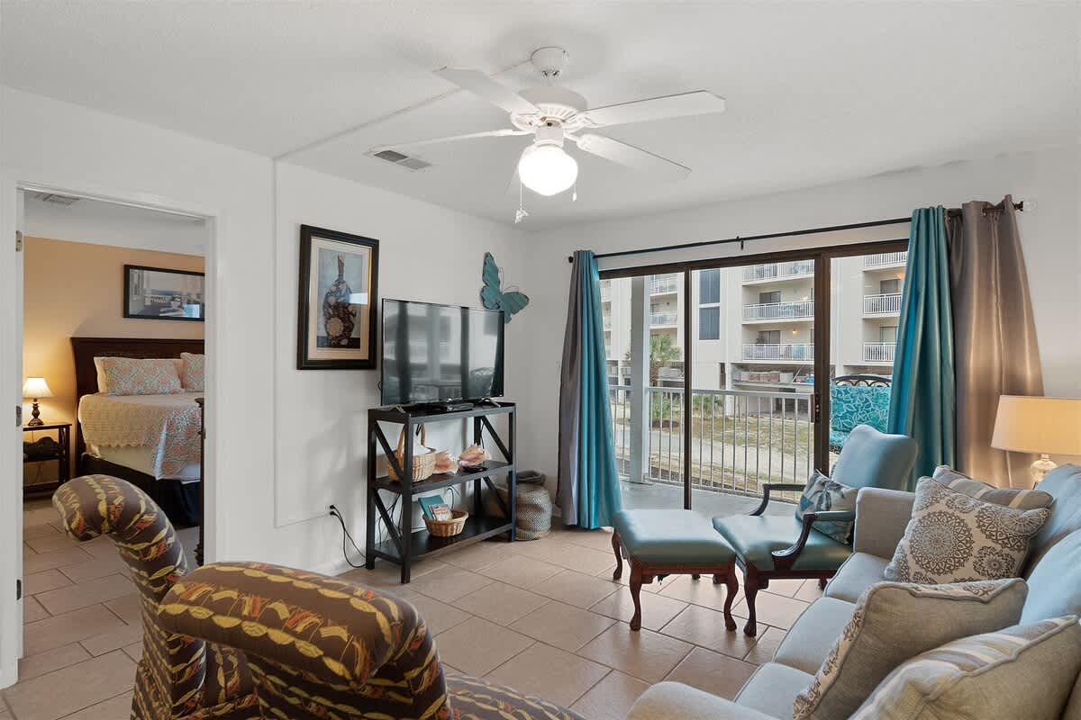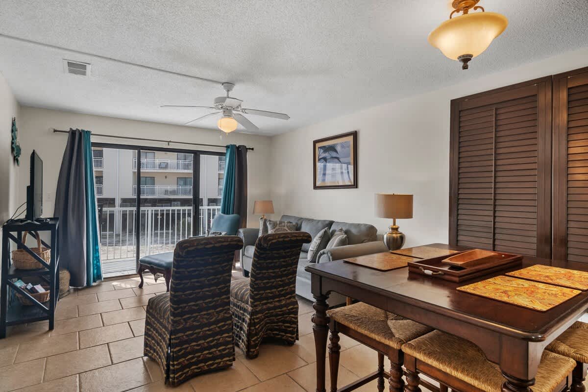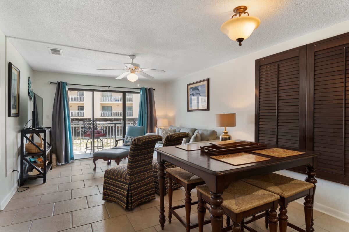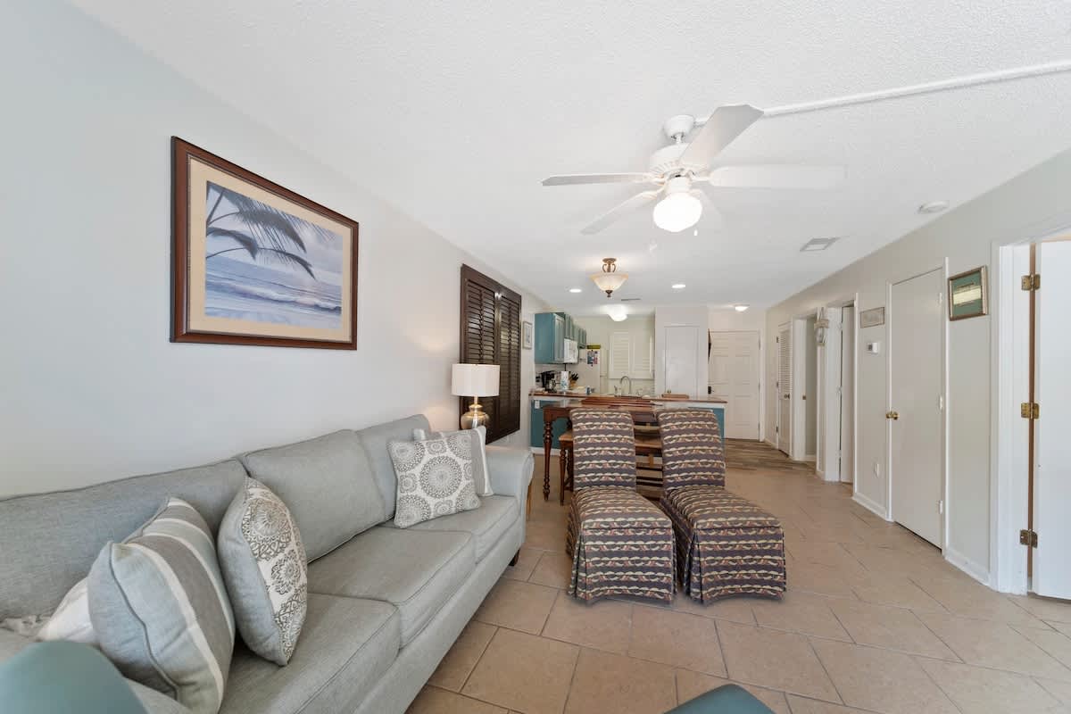 Welcome to Romar Beach 108, where coastal charm meets laid-back vibes! This ground-floor gem is just steps from the sand, making it easy to roll out of bed and straight into beach mode. Inside, the vibrant decor pops with island-inspired blues and warm wooden accents, setting the perfect tone for a stress-free stay.