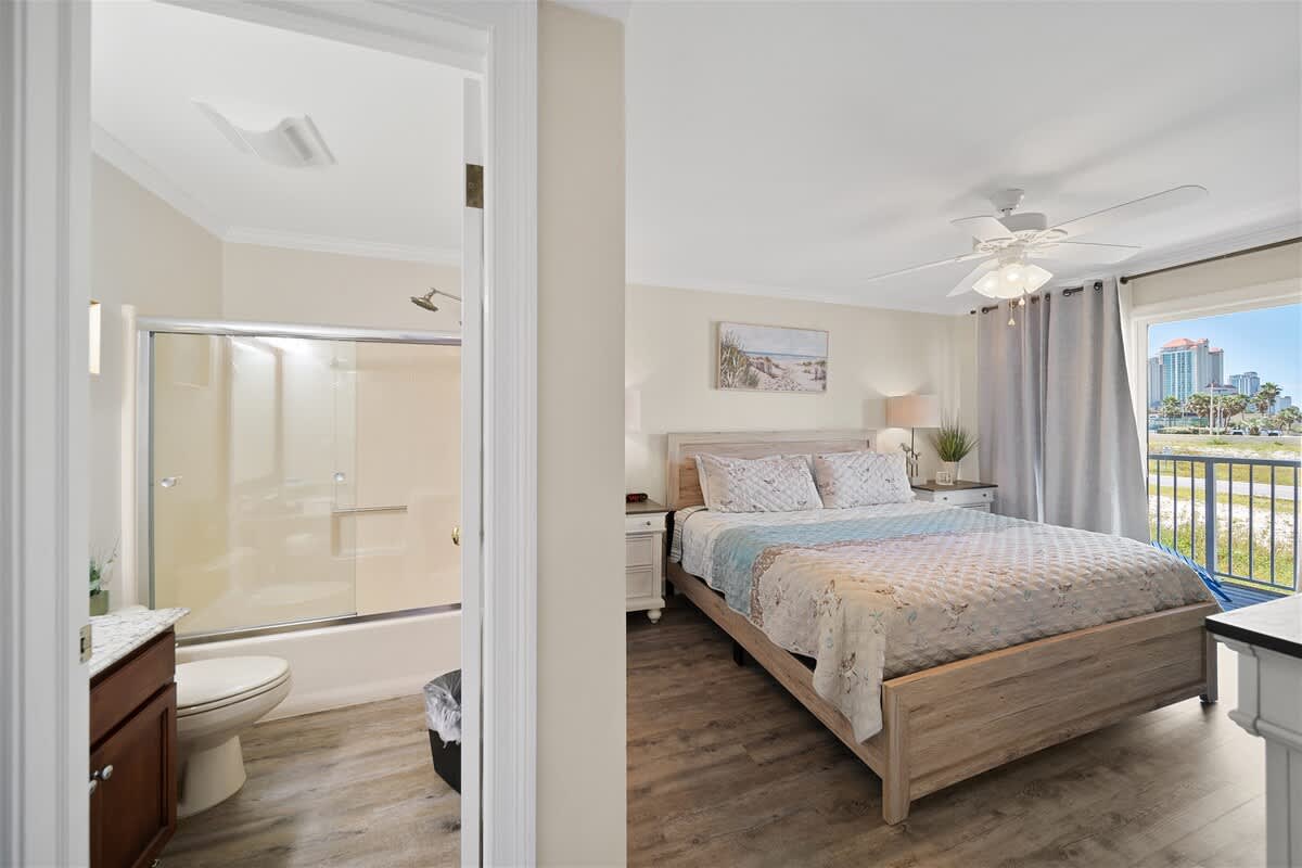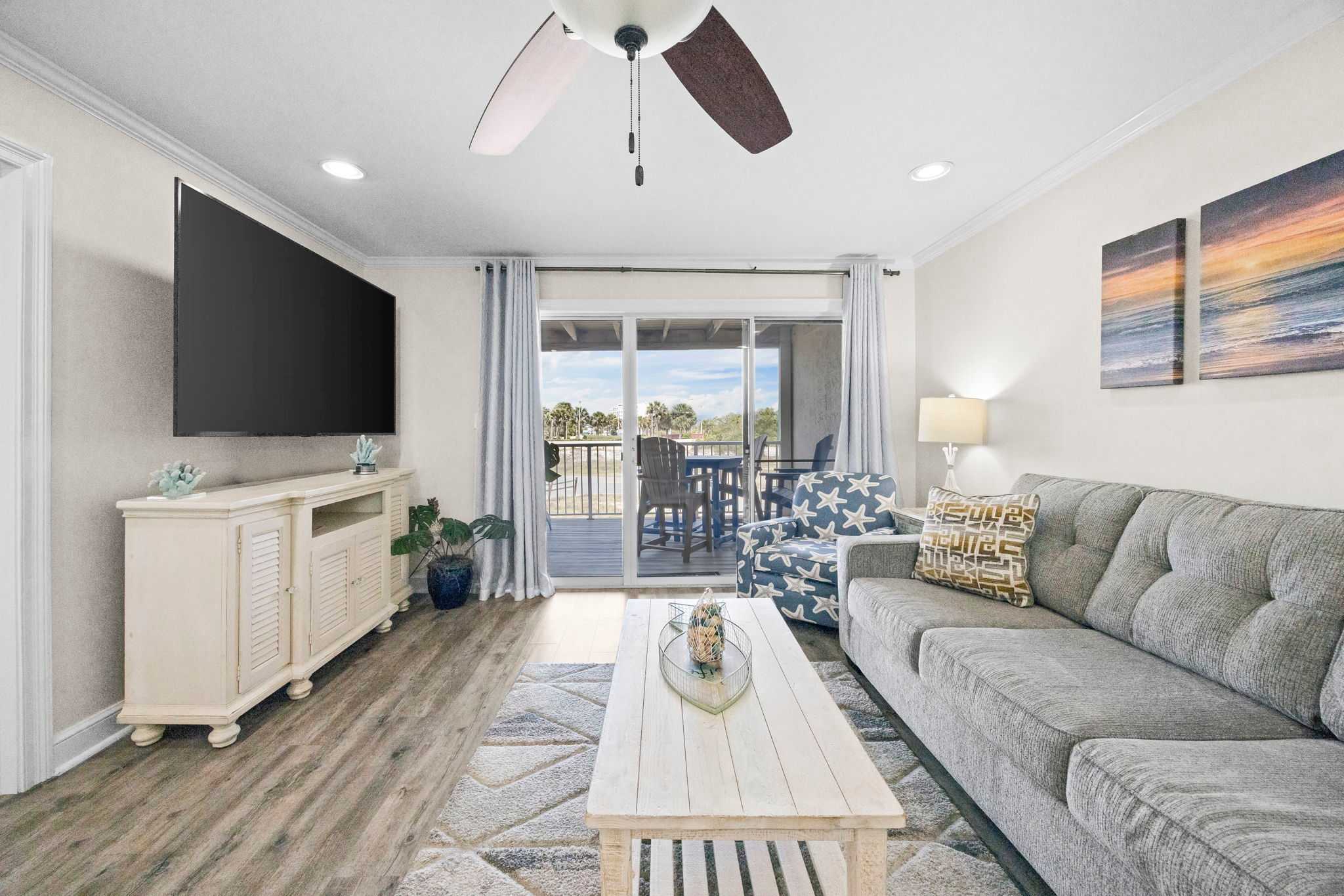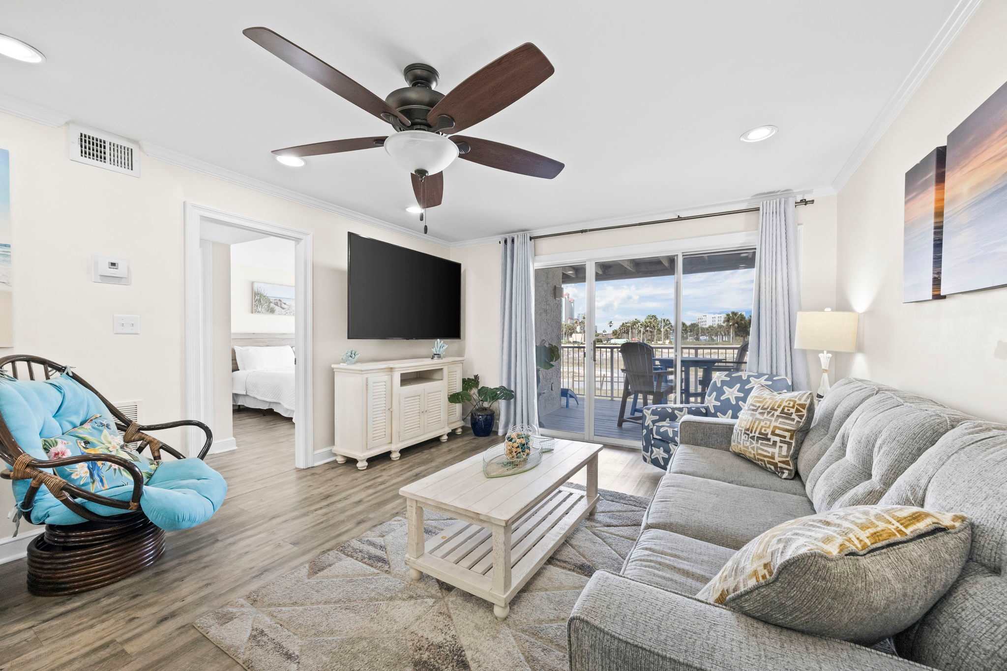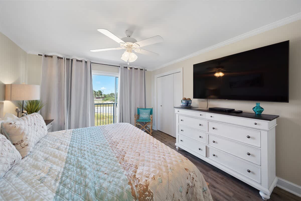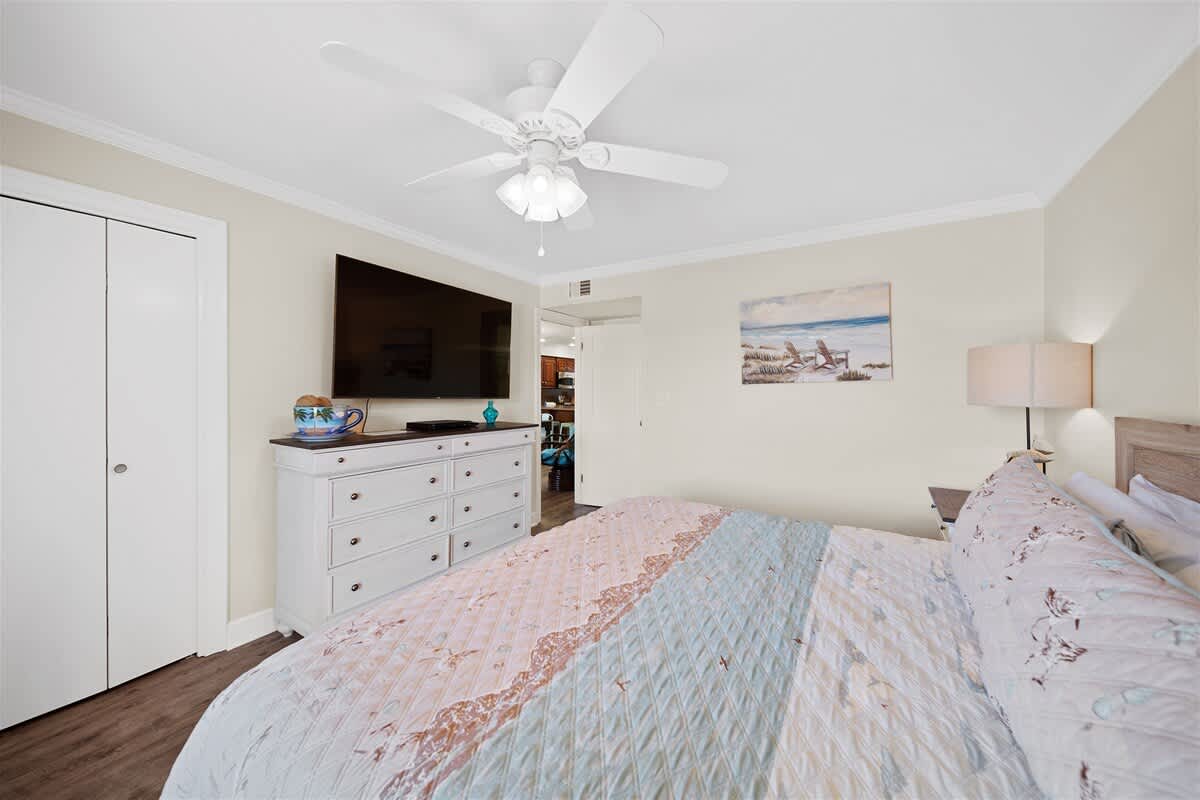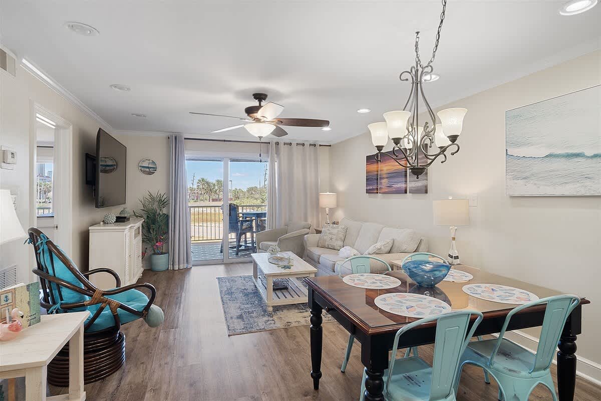 Step inside and let the good vibes roll! The open-concept living area is designed for ultimate relaxation, with plush seating, beachy decor, and plenty of natural light streaming in through the sliding glass doors. The private balcony is the perfect place to sip your morning coffee while enjoying the fresh Gulf breeze.