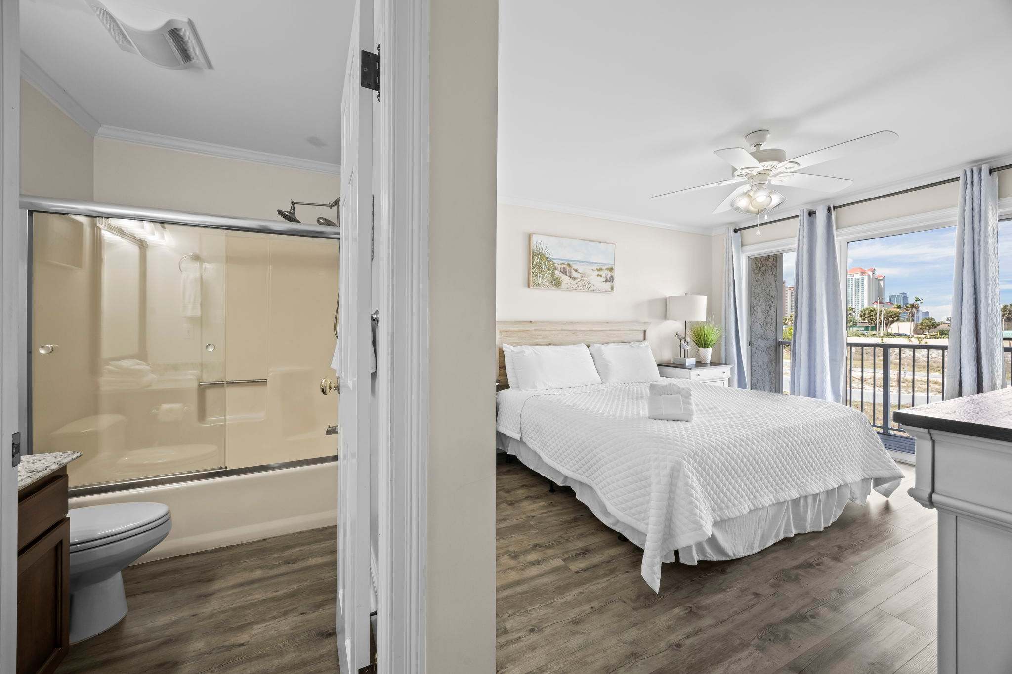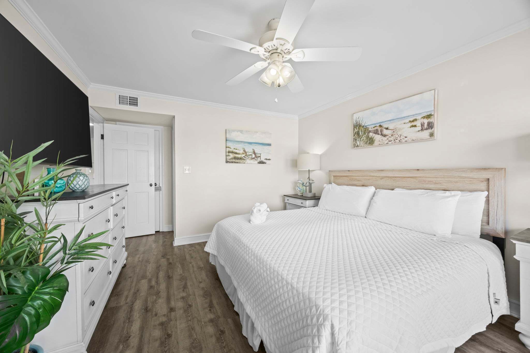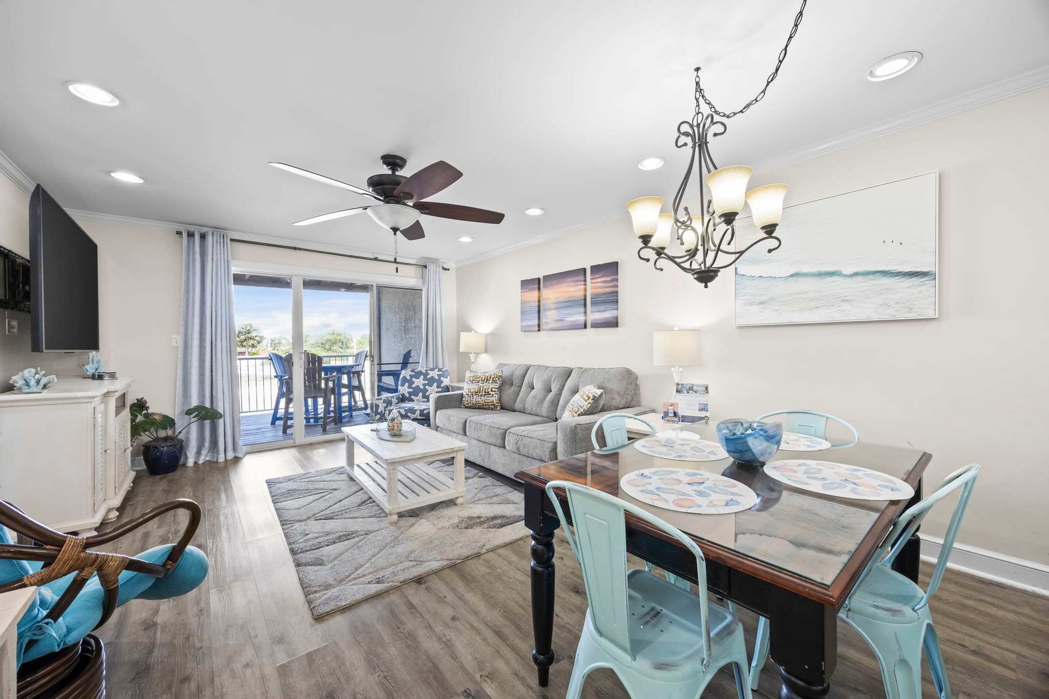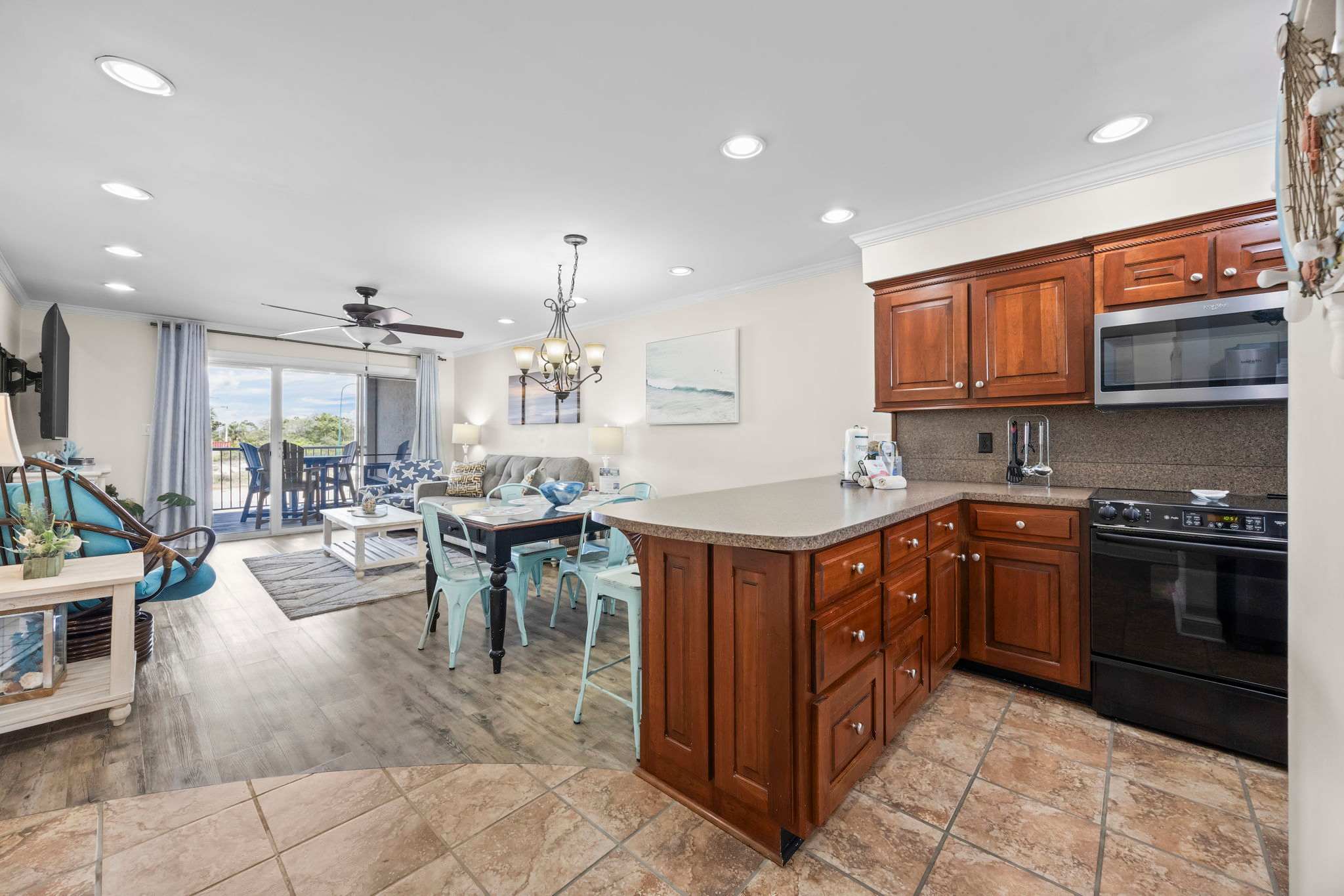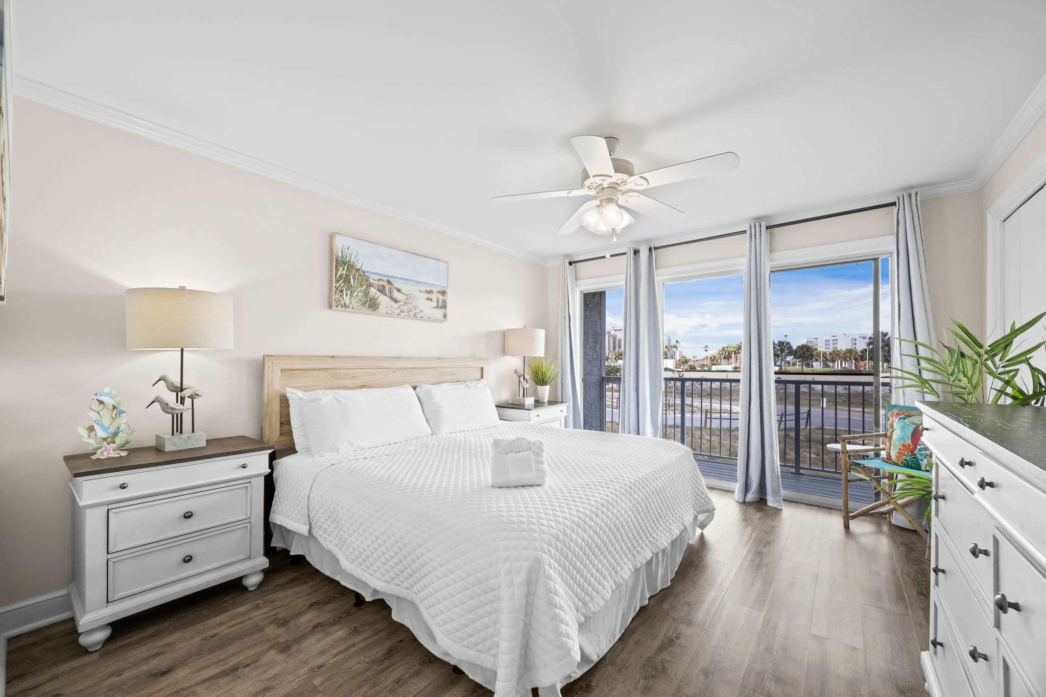 Step inside and let the good vibes roll! The open-concept living area is designed for ultimate relaxation, with plush seating, beachy decor, and plenty of natural light streaming in through the sliding glass doors. The private balcony is the perfect place to sip your morning coffee while enjoying the fresh Gulf breeze.