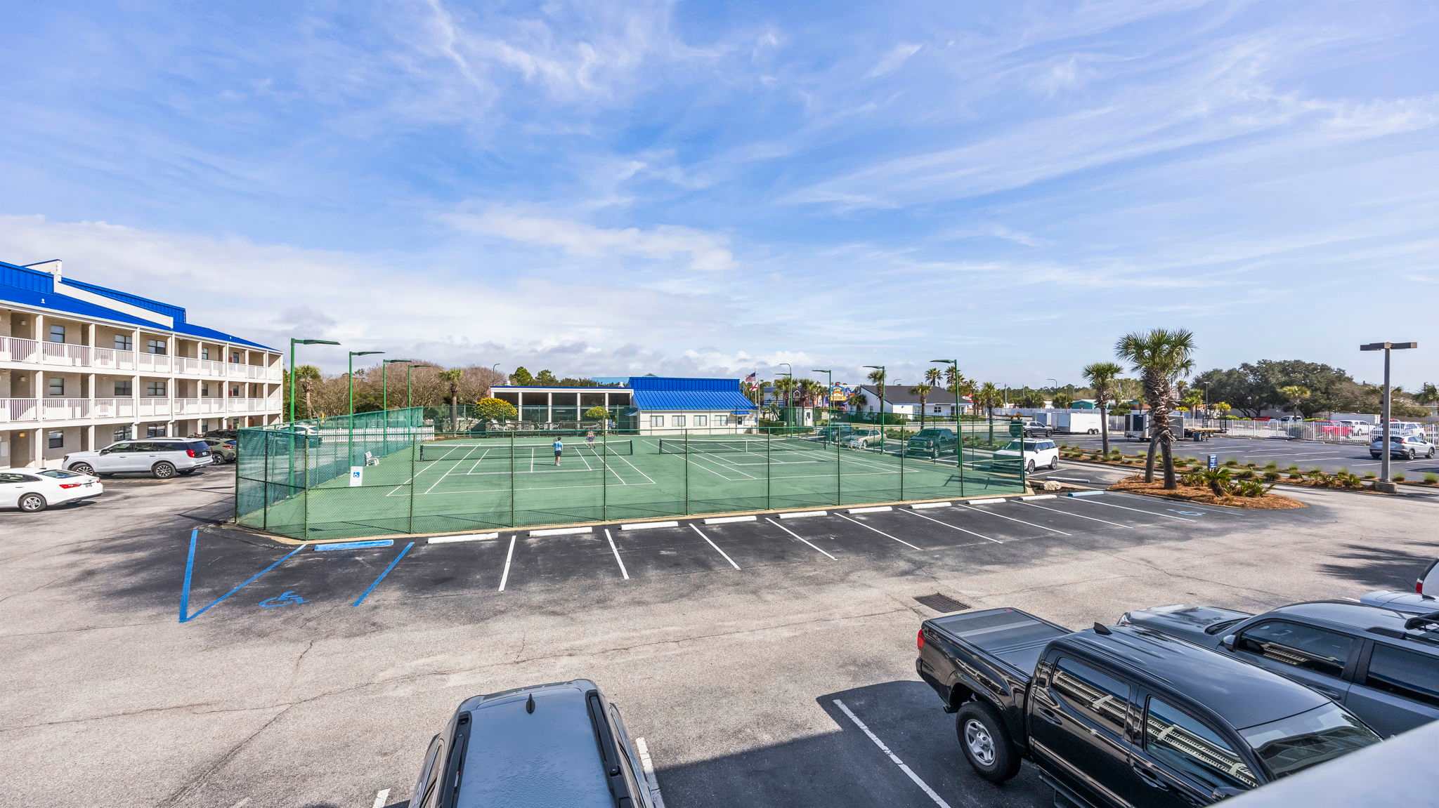 The fun doesn’t stop when you leave the beach—this resort-style property is loaded with amenities to keep the good times going. Cool off in the outdoor pools, or take a break from the sun and swim in the indoor pool. Hit the sauna for a little R&R, or break a sweat in the gym. Feeling competitive? Challenge your crew to a match on the tennis courts before heading back to your balcony for a well-earned sunset cocktail.