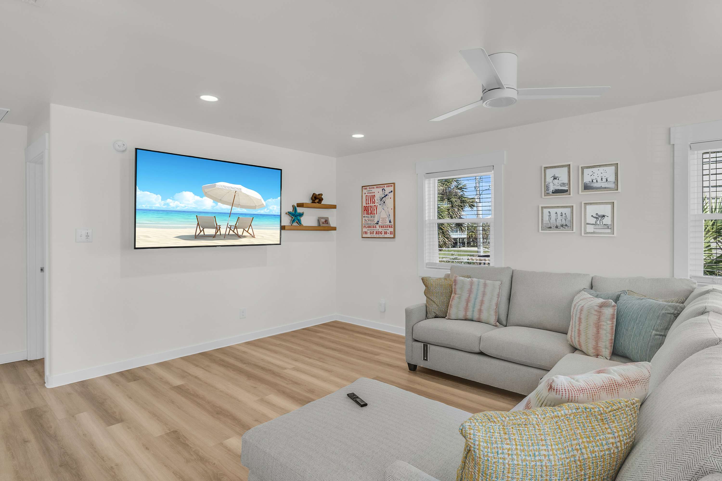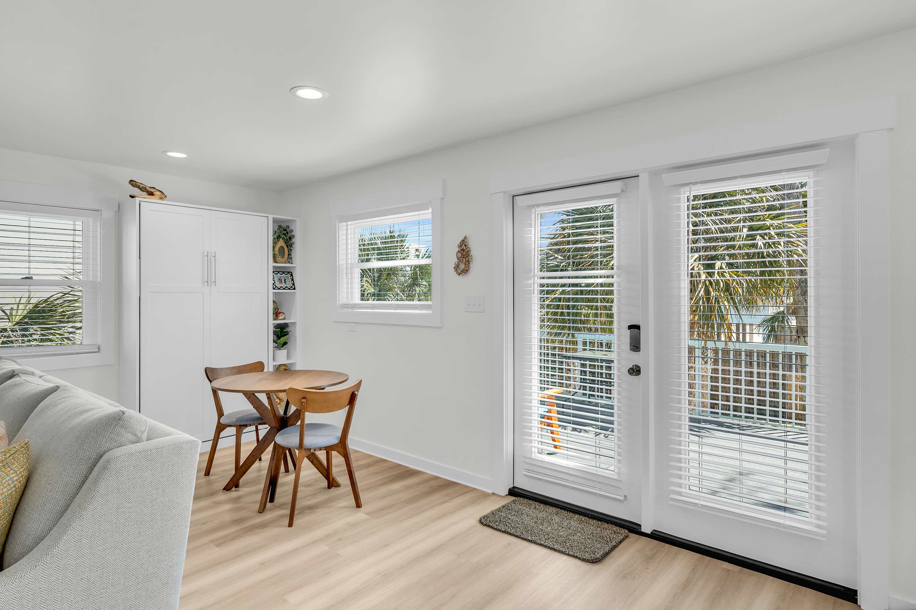 This place takes outdoor living seriously. The expansive deck is ideal for sunbathing, grilling, or just lounging with a view of the lush palm trees swaying in the breeze. Plus, you’ve got your very own private pool to cool off and unwind whenever the mood strikes. Lounge chairs and outdoor seating offer the perfect setup for poolside relaxation.