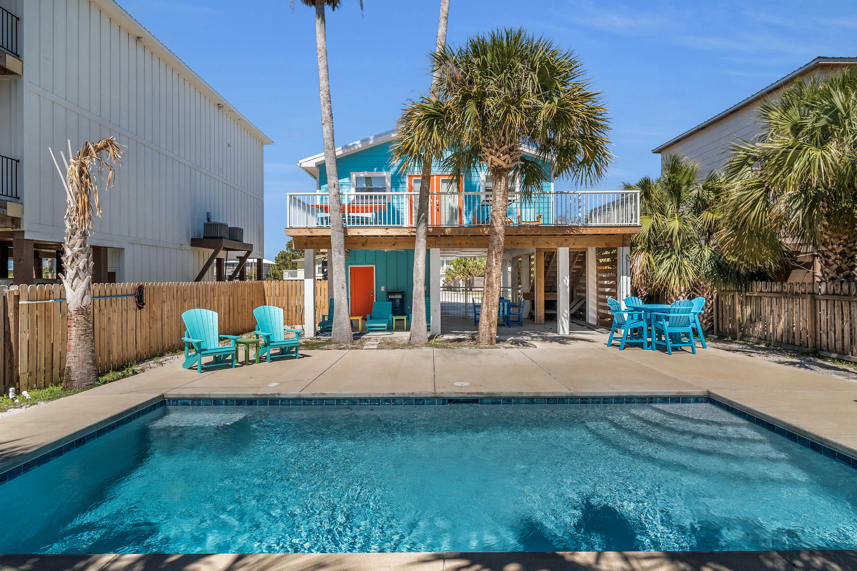 Shindig’s retro beach vibe with its vibrant turquoise and orange exterior screams coastal fun. The private pool is yours to dive into whenever you feel like it, and the spacious outdoor deck offers seating galore. The chill, open-plan interior is designed with all the comforts of home, and you’re just steps away from the Heart of Gulf Shores for endless exciting adventures. Whether you’re planning a laid-back family vacay or a surf-inspired friends’ getaway, Shindig delivers big on good times and great memories. Book your stay and let the beachy adventures begin.