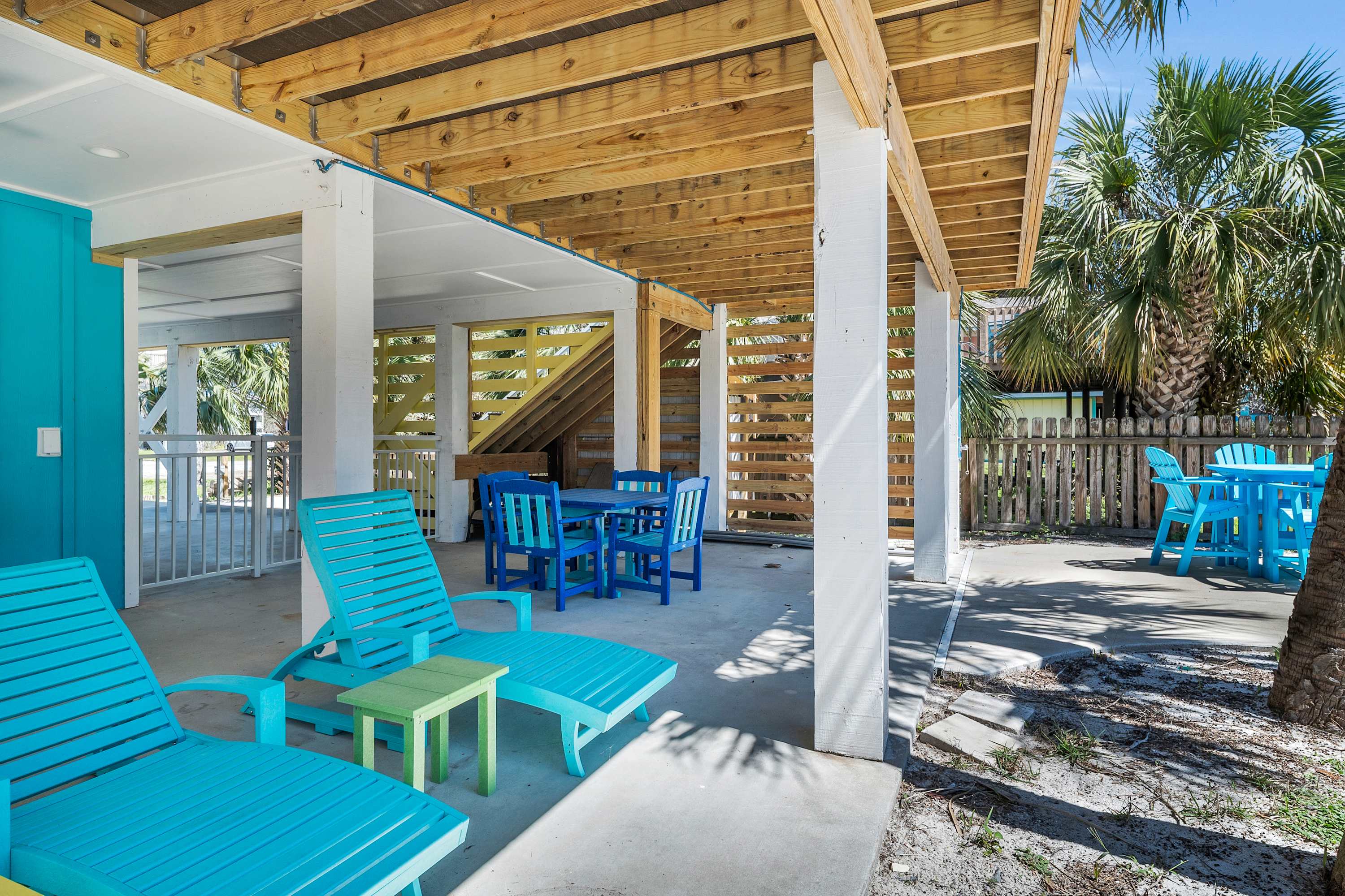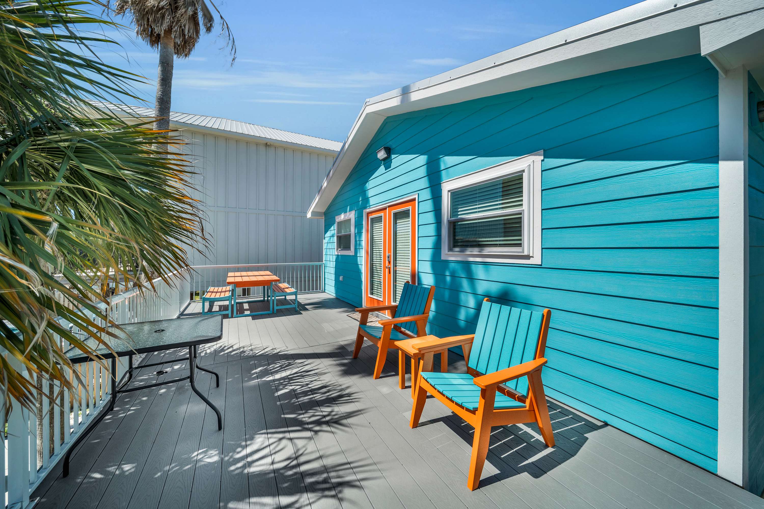 Shindig is a 2-bedroom, 1-bathroom paradise designed with an open-plan layout that’s as breezy as the Gulf air. The living area is bright and inviting with modern coastal decor that feels fresh and playful. Plush sectional seating keeps things cozy while keeping the space feeling wide open. The living room opens up to a spacious balcony through glass doors offering a seamless transition from indoor lounging to outdoor chilling. Kick back on the deck chairs or gather around the picnic tables to enjoy the warm Gulf breeze with your morning coffee or an evening cocktail.