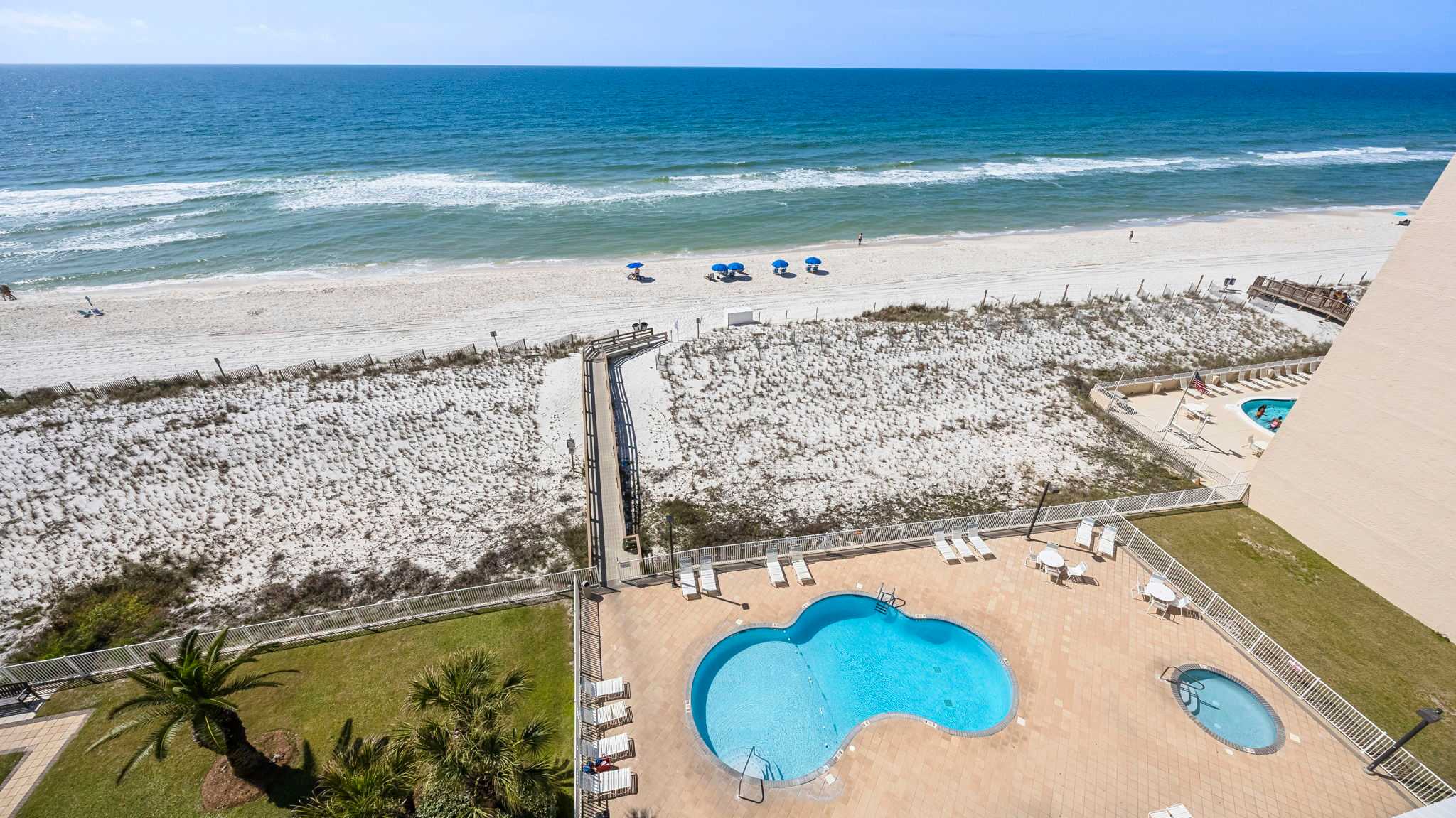 Outside, the beachfront pool is perfect for cooling off, and the grilling area lets you cook up a sunset meal with a gulf view. The direct boardwalk access makes getting to the sand effortless, so you can spend more time enjoying the water and less time hauling your beach gear.